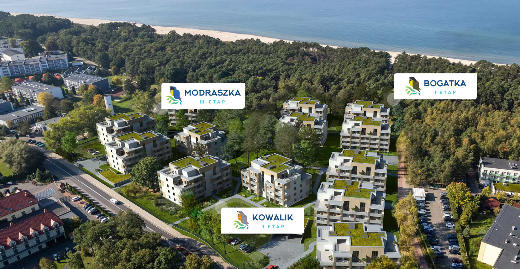 Całość tworzyć mają 3 etapy, które deweloper nazywa gatunkami ptaków, nawiązując do bliskości natury w jaką wkomponowane są apartamenty: