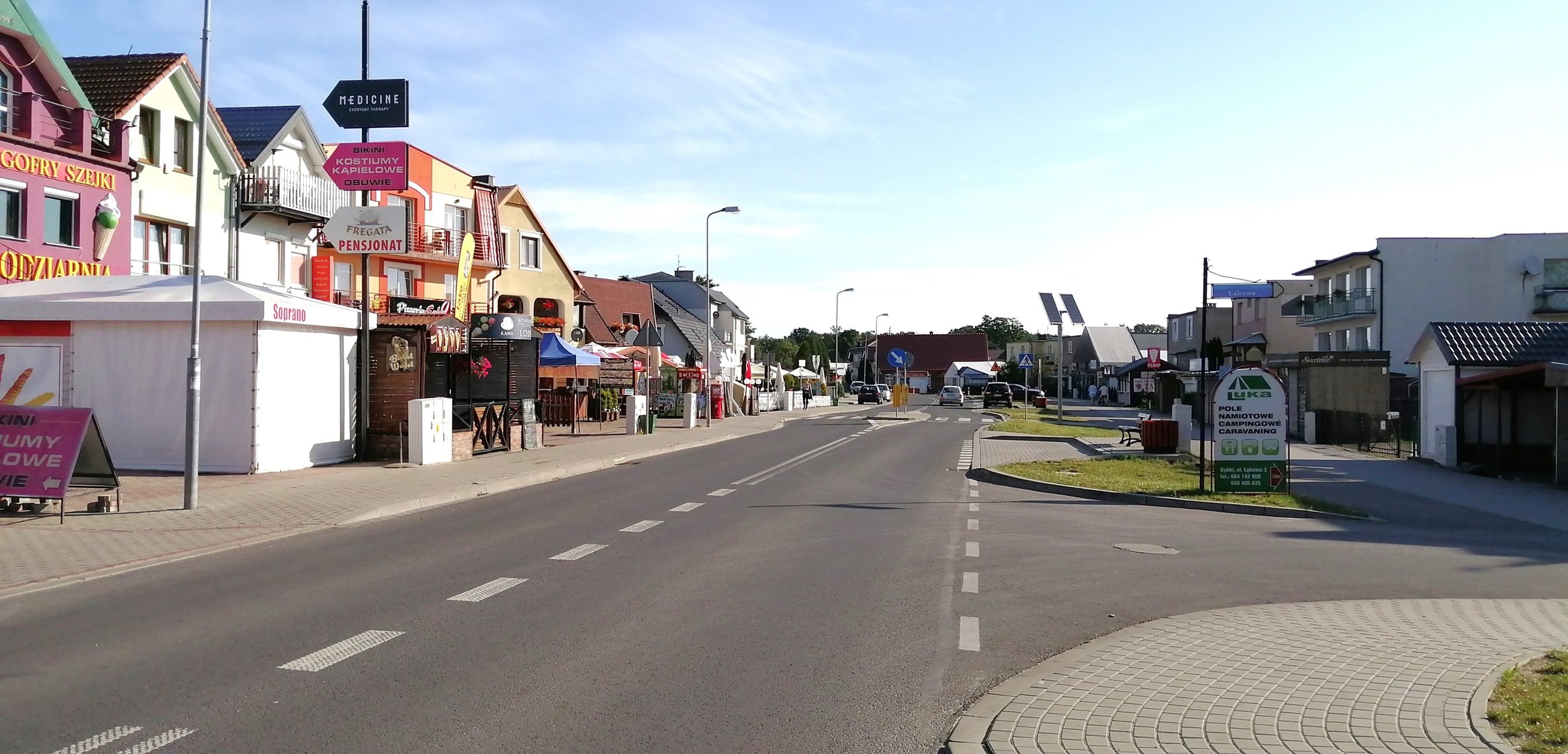 Główna ulica Dąbek to typowa zabudowa małych polskich kurortów - liczne bary i restauracje, mnóstwo reklam i ogólny chaos wizualno-urbanistyczny, fot. InwestycjewKurortach.pl