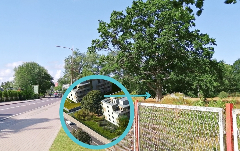 Nic nie wskazuje na to, że miejscowość czy deweloper przywiązują jakąś większą wagę do drzewa, ale dąb pozostanie na terenie kompleksu. Jego urok podziwiać będą mogli właściciele lokali z II i III etapu inwestycji.