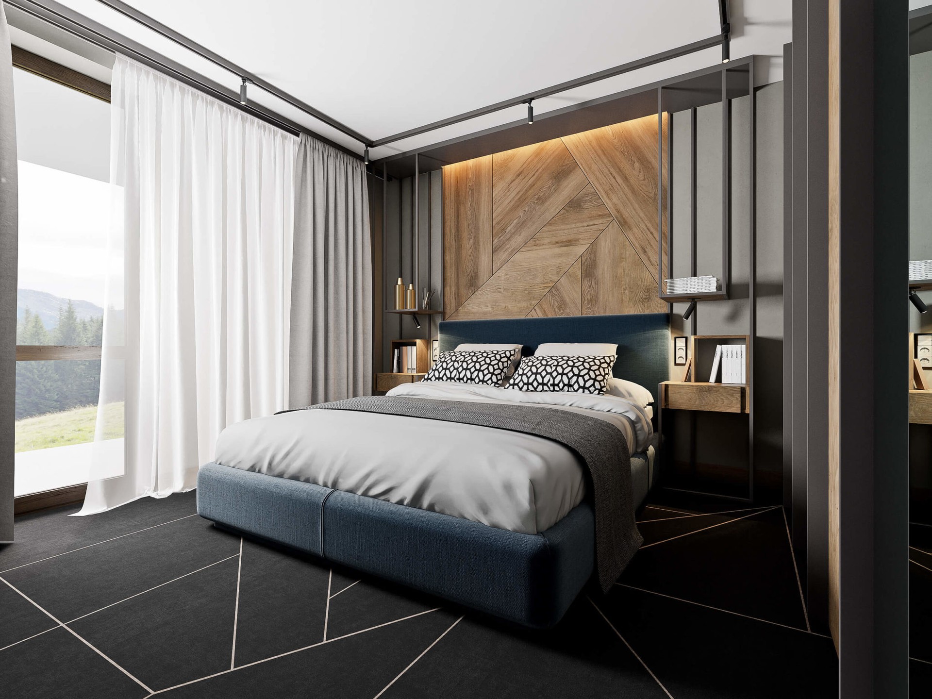 Stylistyka wnętrz nawiązuje do otoczenia. Apartamenty urządzone będą z zastosowaniem naturalnych materiałów: kamień, drewno, liczne przeszklenia, z elementami stylu karkonoskiego. Do wykończenia inwestor zaplanował cenione marki m.in. Kler, Hansgohe czy Villeroy&Boch.