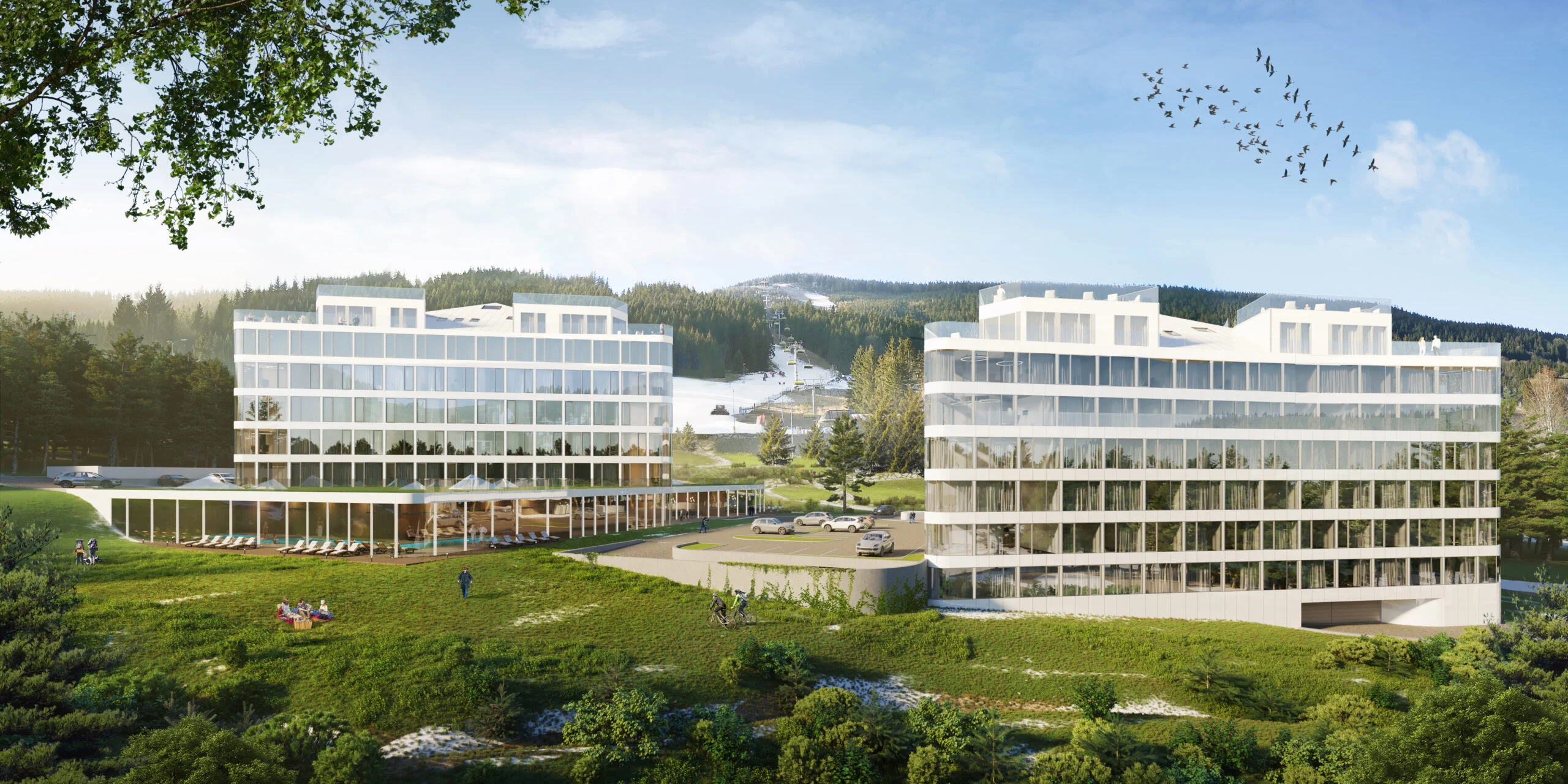 Biała Perła - dwa etapy inwestycji powstają dosłownie tuż przy stoku w ośrodku Czarna Góra Resort w Sudetach