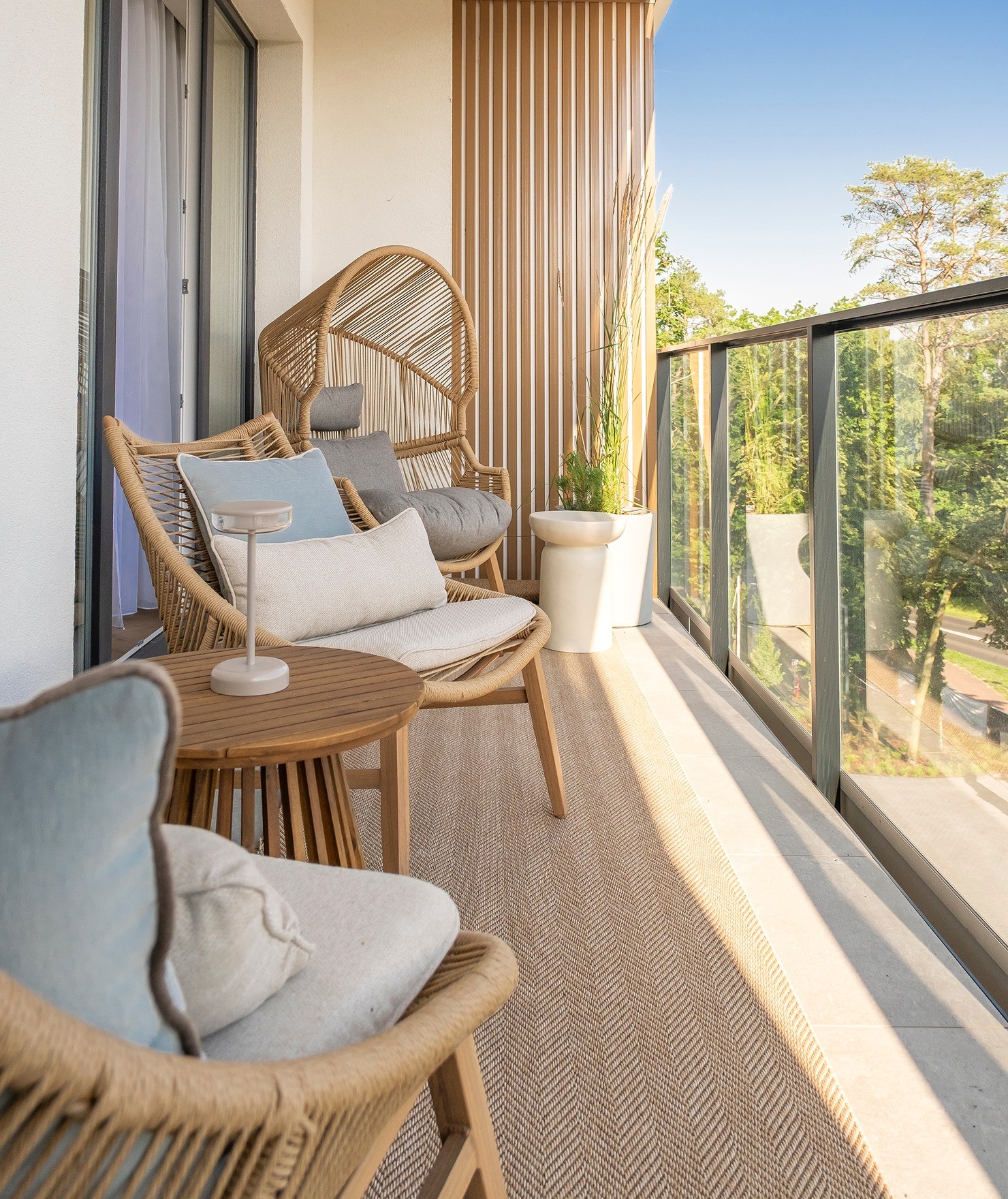 Dwie dodatkowe zalety: inwestycja właśnie niebawem oddana do użytkowania (w 2025 r.), więc nie trzeba czekać na swój wymarzony second home. A każdy lokal ma to co w apartamentach wakacyjnych najważniejsze – przestronne tarasy o powierzchni minium 9 m2, największe mają aż 45 m2. Na każdym można wiec z urządzić prywatną chill strefę: ustawić wygodne leżaki czy łóżka do opalania, zaaranżować przestrzeń do wspólnych posiłków z widokiem na las lub wodę.