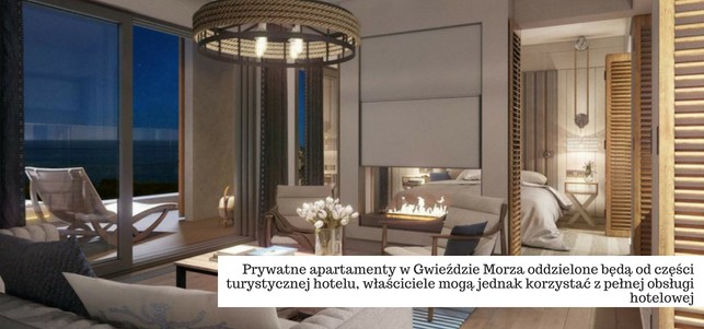 Deweloper Gwiazdy Morza od lat zaskakuje. Najpierw odwagą budowania prestiżowego projektu w nie cieszącym się dobrą sławą Władysławowie. Firma od lat powoli, ale sukcesywnie przyczynia się do zmiany wizerunku kurortu. Później zaskoczyła wprowadzeniem koncepcji wydzielenia w condohotelu części prywatnej, dla zamożnych klientów, którzy chcą mieć własny apartament z obsługą hotelową, ale w części oddzielonej od najmu turystycznego. Dziś deweloper zaskakuje tym, że apartamenty będą sprzedawane przez… innego dewelopera. – To pierwszy taki przypadek w Polsce. Kiedy deweloperzy łączą siły, by sprzedawać własne apartamenty. Zupełnie nowatorski ruch, ale bardzo ciekawy. Uzupełnienie oferty o luksusowe apartamenty nadmorskie jest niewątpliwie dodatkiem do oferty spółki Tacit, która w sprzedaży ma warszawski równie prestiżowy projekt Cosmopolitan – komentuje Marlena Kosiura, ekspert portalu InwestycjewKurortach.pl