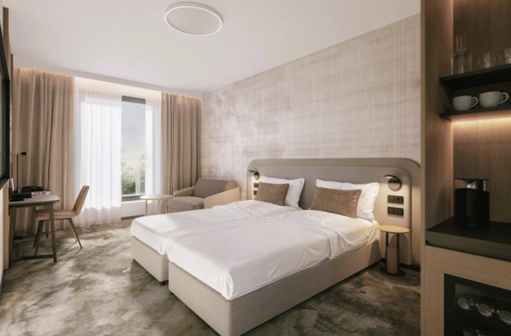 Znajdzie się tu łącznie 220 pokoi o różnym standardzie, m.in. pokoje rodzinne, 8 typu Junior Suite oraz jeden wyjątkowy apartament Party Suite zlokalizowany na najwyższym piętrze. Będzie prawdziwie VIPowski i imprezowy, z dostępem do tarasu, na którym znajdą się sauna i jacuzzi.