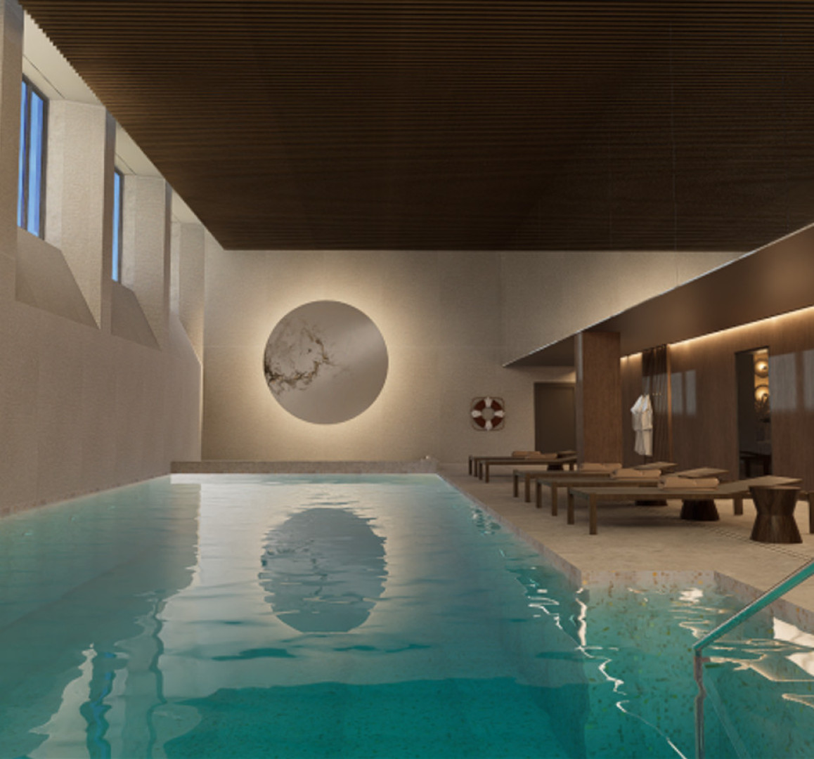 Sauny i jacuzzi dla wszystkich gości hotelowych zaplanowane są też w strefie relaksu. Będzie basen, brodzik i jacuzzi, 6 gabinetów SPA, siłownia i Kids Club o powierzchni 181 m2.