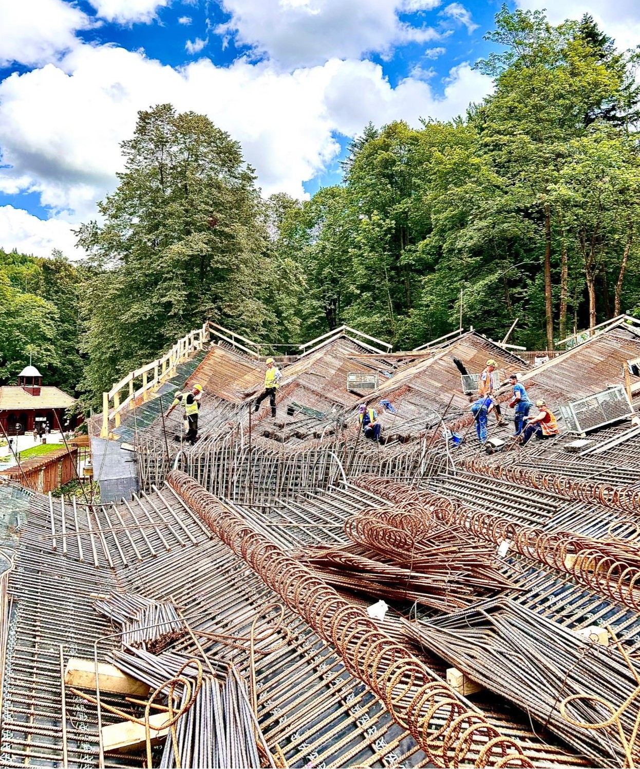 Jak skomplikowana technicznie była budowa doskonale oddaje zdjęcia zbrojenia dachu, prawie jak rzeźba, fot. pracownia Saneccy