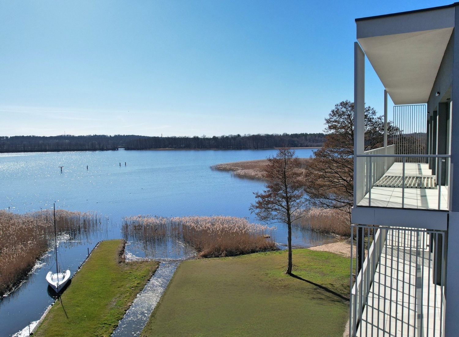Port Ostróda, inwestycja już wybudpwana, z tarasów rozpościera się panoramiczny widok na jezioro, fot. Marshall Real Estate
