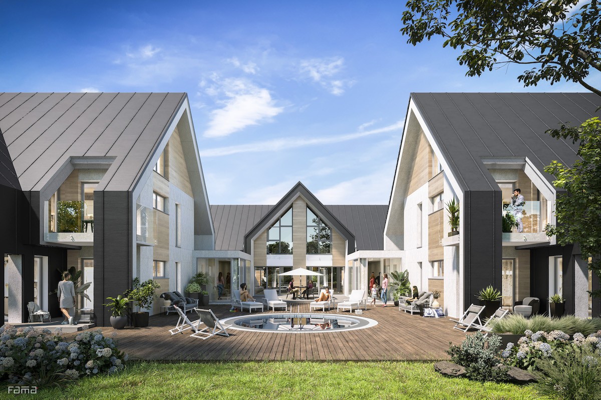 Projekt budynku przyciąga wzrok nowoczesną architekturą. Równocześnie ze swoją niewielką skalą – mieć będzie jedynie dwie kondygnacje – doskonale wpisuje się w mazurski kontekst. Architektom przyświecało jedno założenie. Chcieli sprawić, by wypoczywający tu goście mieli bezpośredni kontakt z otaczającą przyrodą – największym turystycznym atutem krainy jezior. Bliskość natury sprawiła też, że zdecydowano się tu postawić na rozwiązania sprzyjające ochronie przyrody. Podwyższona termoizolacja oraz własna energia wytwarzana przez panele fotowoltaiczne to ukłon w stronę ekologii, ale również niewątpliwa korzyść dla inwestorów, gdyż pozwalają minimalizować koszty eksploatacji. Za dodatkową opłatą przewidziano również możliwość instalacji klimatyzacji i systemu smart dom.