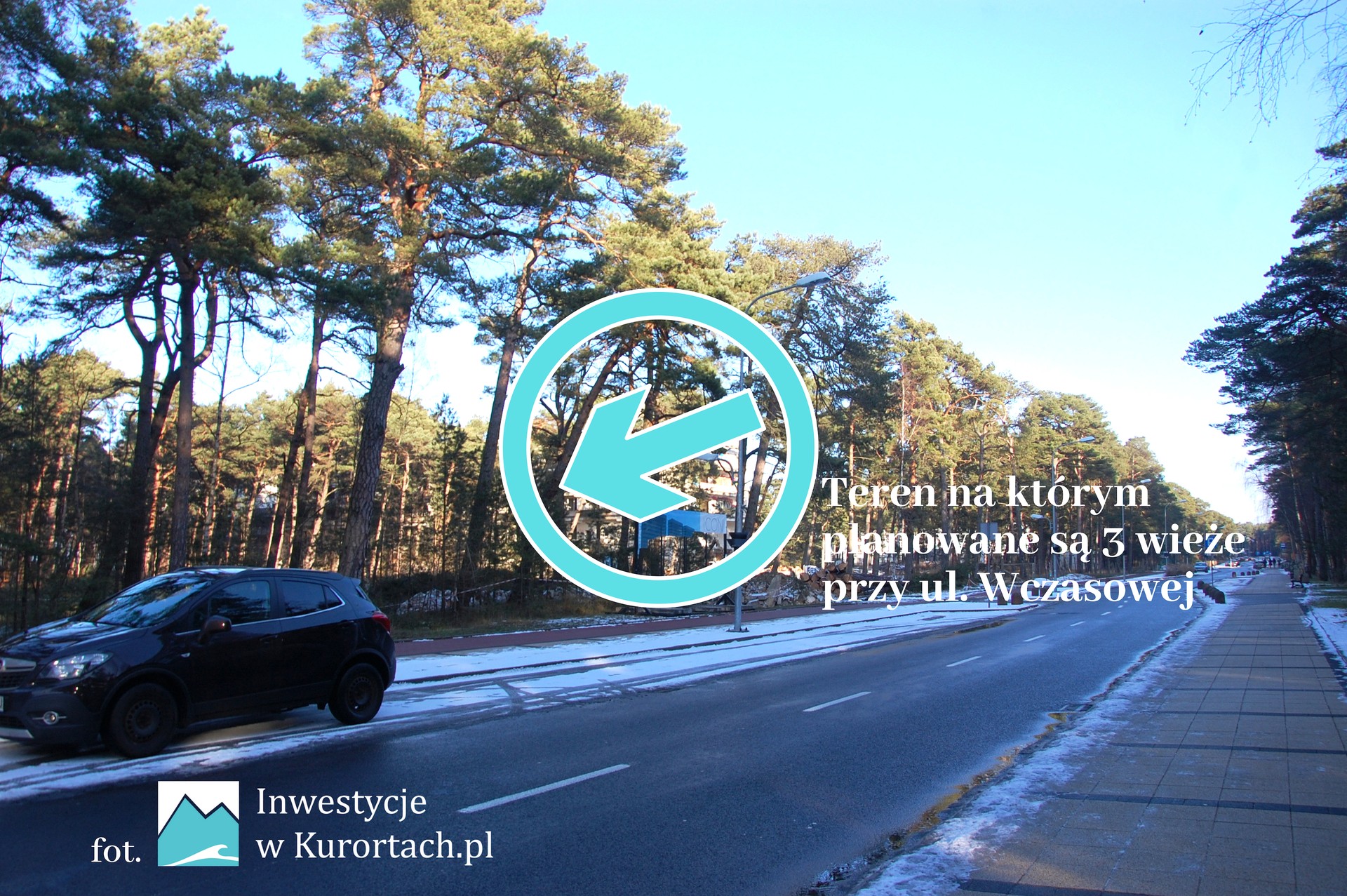 Ul. Wczasowa zlokalizowana jest we wschodniej części Ustki, czyli tej komercyjnej i zagospodarowanej. To właśnie tu, na działce, którą od plaży oddziela jedynie niewielki pas lasu powstać mają 3 wieże - w sumie jak szacują eksperci portalu InwestycjewKurortach.pl ok. 300-400 apartamentów.