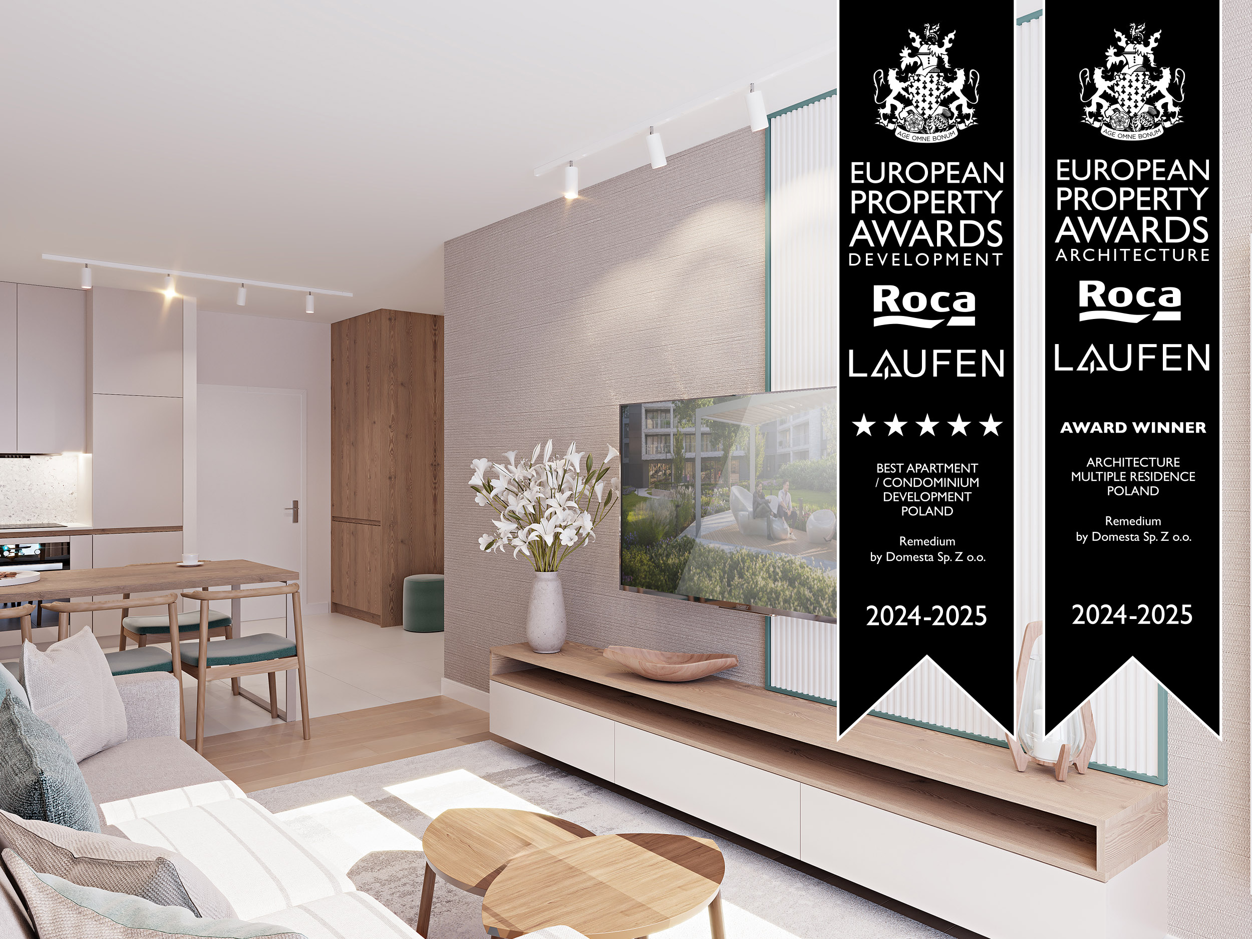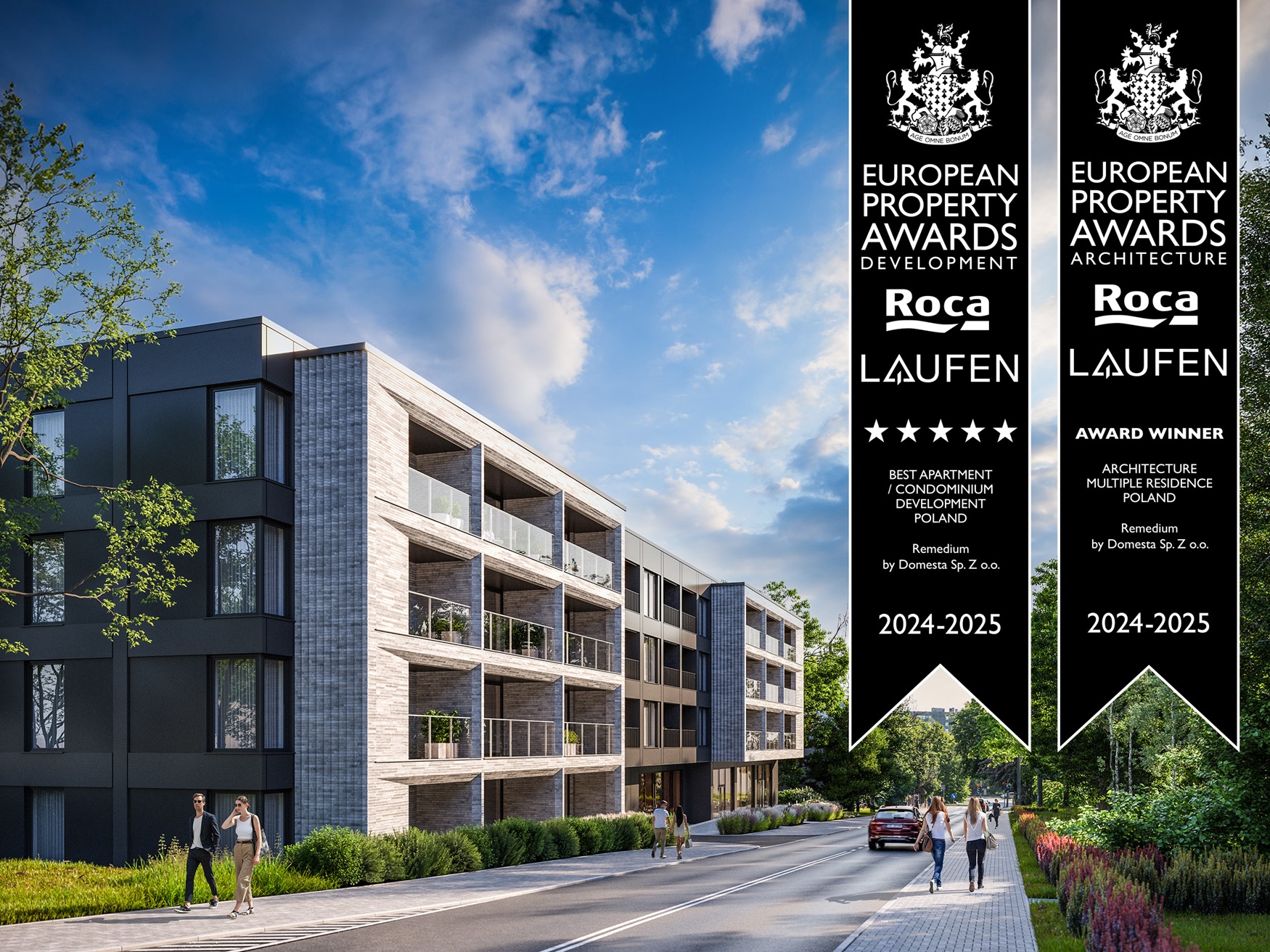 Inwestycja pod kątem jakości i designu została zauważona na arenie międzynarodowej. W październiku 2024 r. Domesta otrzymała nagrodę w Property Awards w Londynie, to jeden z najbardziej prestiżowych konkursów w branży deweloperskiej i projektowej. Remedium zostało nagrodzone w kategoriach Apartment/Condominium Development oraz Architecture Multiple Residence.