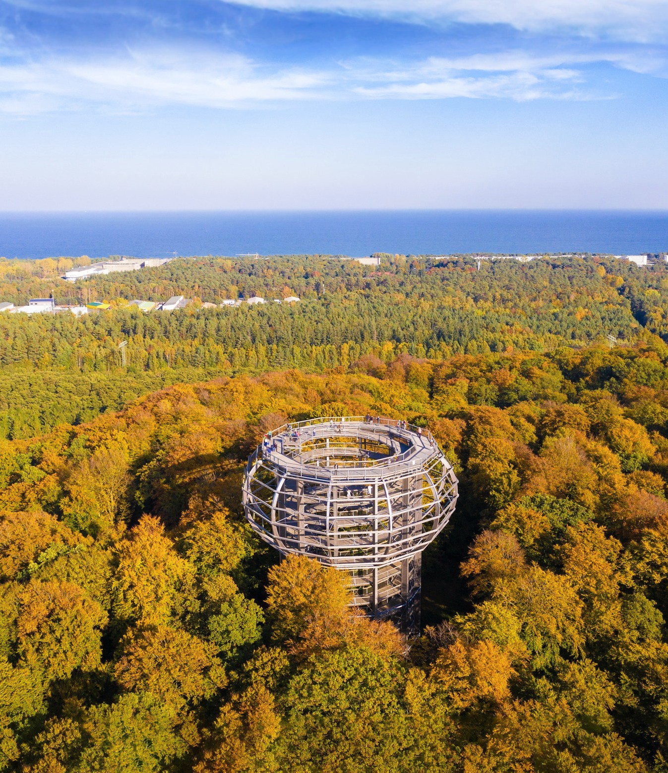 Takie bezpośrednie sąsiedztwo ma wieża na niemieckiej wyspie Rugia, do której wyjazdy studyjny inwestor proponuje kołobrzeskim radnym. W kurorcie Prora wokół bukowego lasu wyrosła 40 metrowa wieża, to część kompleksu Centrum Przyrodnicze Rügen (Naturerbe Zentrum Rügen). Wieża powstała w 2013 r. Oglądali już ją inni samorządowcy z Polski, w 2017 r. z wizytą studyjną były tam władze Zielonej Góry. Ostatecznie ścieżka w koronach drzew w Zielonej Górze nie powstała, powstała w niedalekim Świeradowie-Zdrój, którą wybudowała i zarządza spółka z czeskim kapitałem.