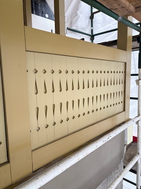 Po przeprowadzeniu szczegółowych badań stratygraficznych możliwe było wierne odtworzenie pierwotnej kolorystyki werandy. Na ich podstawie dobrano odpowiednie barwy i technikę wykończenia. Efekty tych prac są już widoczne na drewnianych elementach, które odzyskały swój dawny wygląd