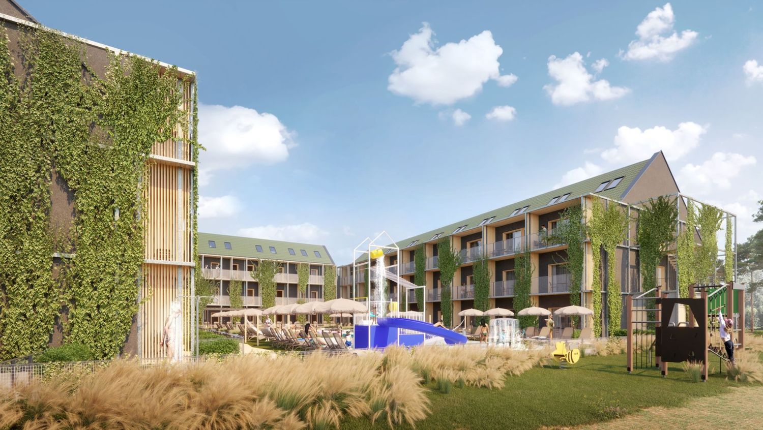 W ramach VacationClub Resort Dźwirzyno przewidziano też strefy dla dzieci: park wodny przy basenie i plac zabaw.
