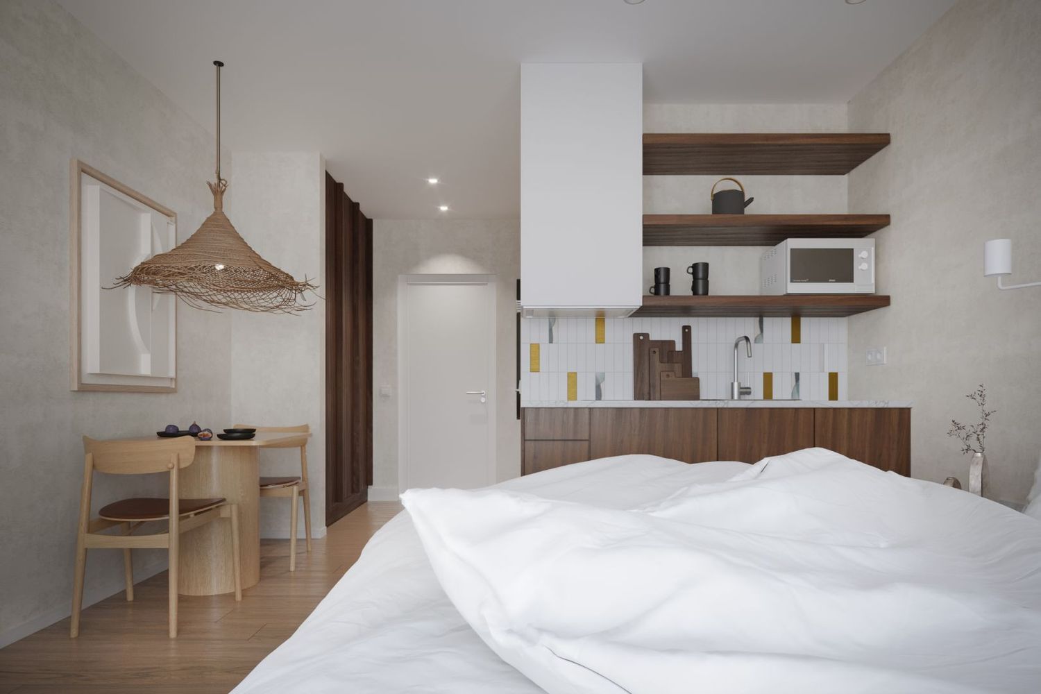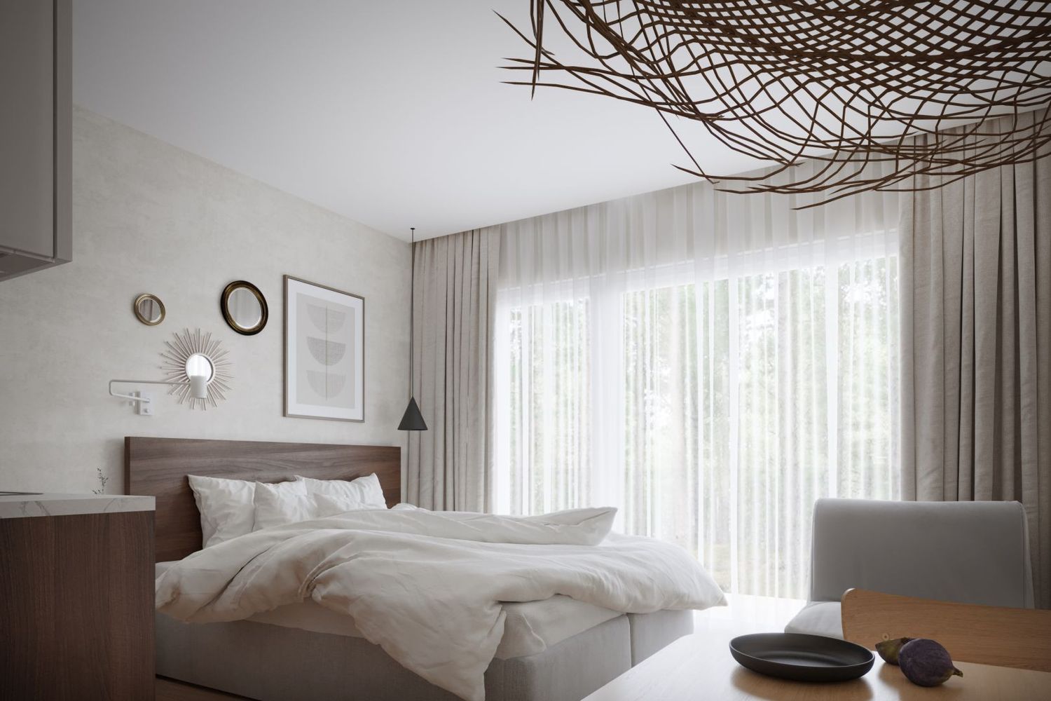 W obiekcie powstanie w sumie 129 apartamentów. 1-, 2 i 3-pokojowych, w mniejszych metrażach – od 21 do 47 mkw. Wszystkie sprzedawane będą w opcji wykończenia pod klucz wraz z meblami. Wszystkie mają też aneksy kuchenne. Do tego w ramach kompleksu zaplanowano basen zewnętrzny z patio i leżakami, do części tej niektóre apartamenty na parterze będą mieć wejście wprost ze swoich ogródków.