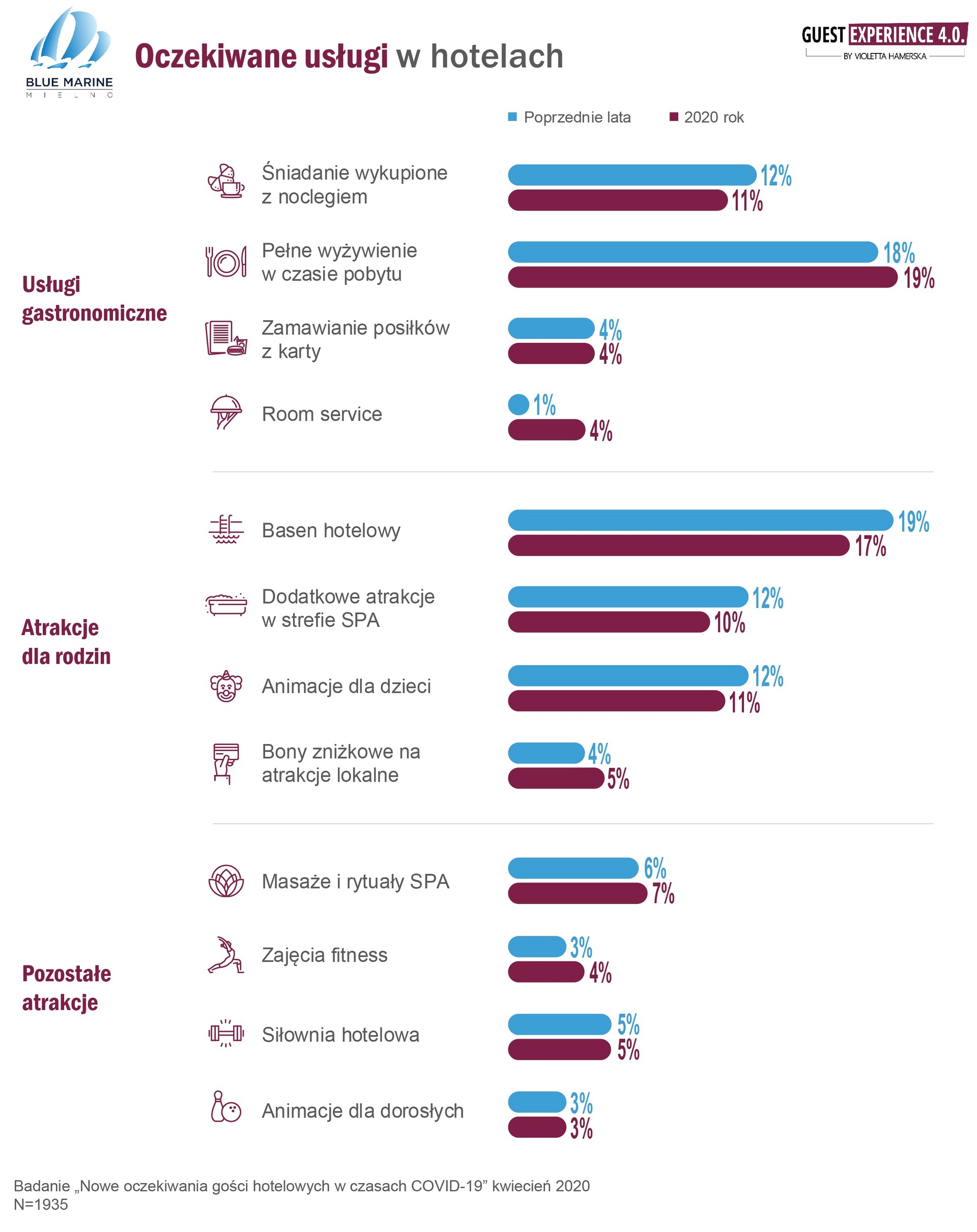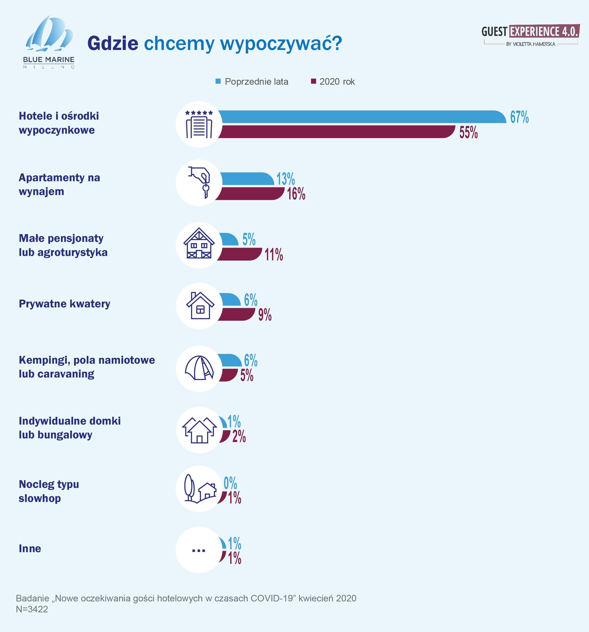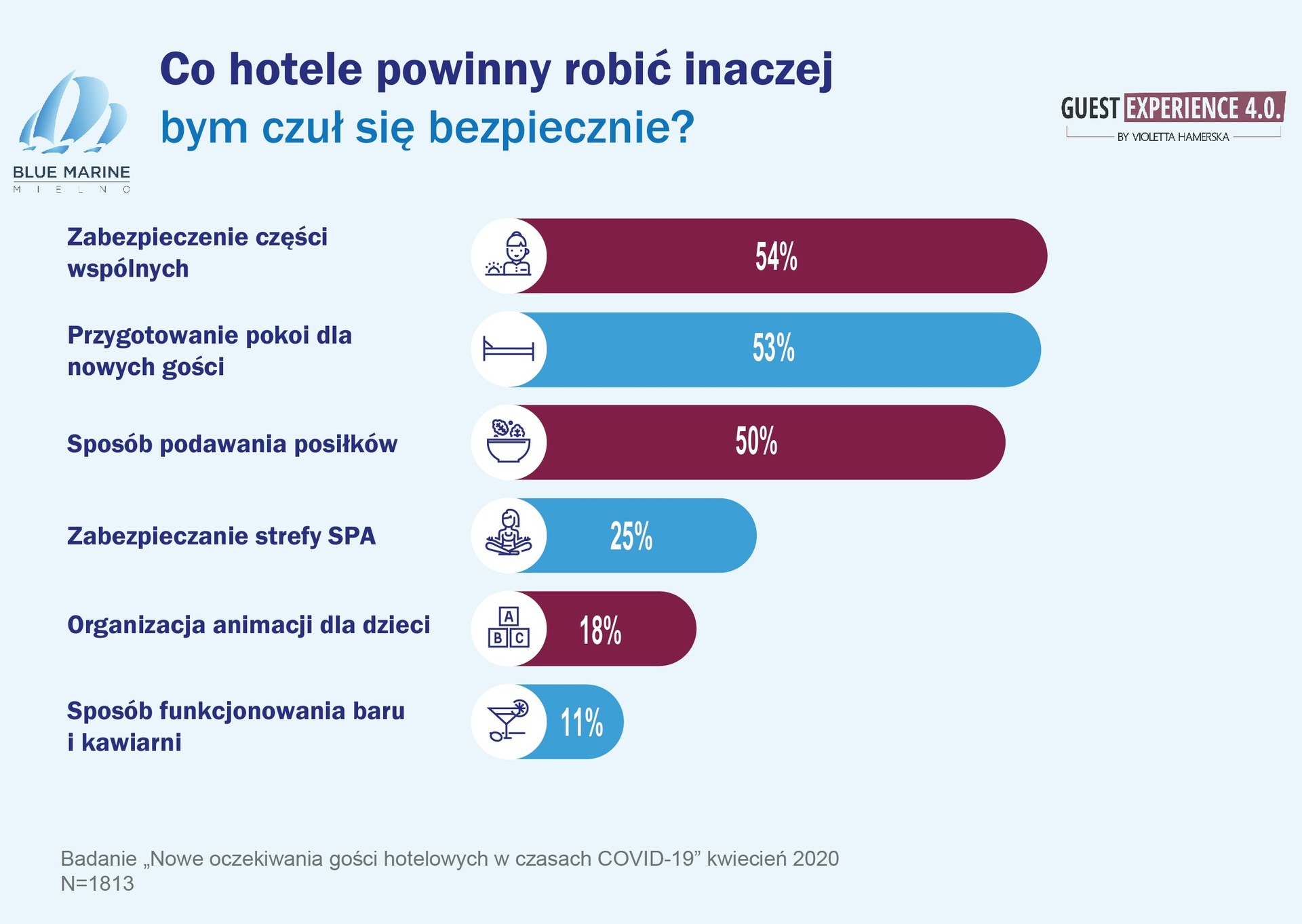 Badanie „Nowe oczekiwania gości hotelowych w czasach COVID-19” zrealizowano w dniach 19–26 kwietnia 2020 r. Pomysłodawcą i inicjatorem badania był obiekt Blue Marine Mielno. W przygotowaniu i realizacji udział wzięła także Violetta Hamerska, niezależny ekspert rynku hotelowego z 30 letnim doświadczeniem w turystyce. Do inicjatywy przyłączyło się także blisko 200 hoteli (w tym hoteli sieciowych) i obiektów noclegowych z całej Polski, zlokalizowanych zarówno w kurortach jak i miastach. Dzięki tej wspólnej inicjatywie uzyskano 3.422 ankiet badawczych wypełnionych przez gości hotelowych, na bazie których opracowano główne wnioski z badania.