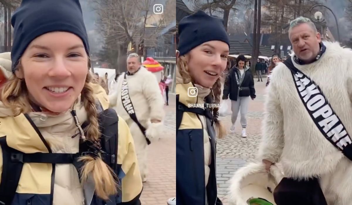 Nagranie aktorki Hanny Turnau, rodowitej zakopianki z Krupówek z zimy 2024 r. obiegło interenet stając się ogólnopolskim memem, pokazując mężczyzna pozujący do zdjęć będąc jedynie w tle nagrania zarządał od aktorki zapłaty. Okrzyknięto go "chciwym misiem z Zakopanego", ale finalnie cała akcja przyczyniła się też do popularyzacji jedynego legalnego misia Marka Zawadzkiego, fot. Instagram hanny Turnau