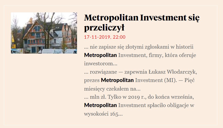 1400 poszkodowanych inwestorów którzy mieli zarabiać na nieruchomościach Metropolitan Investment