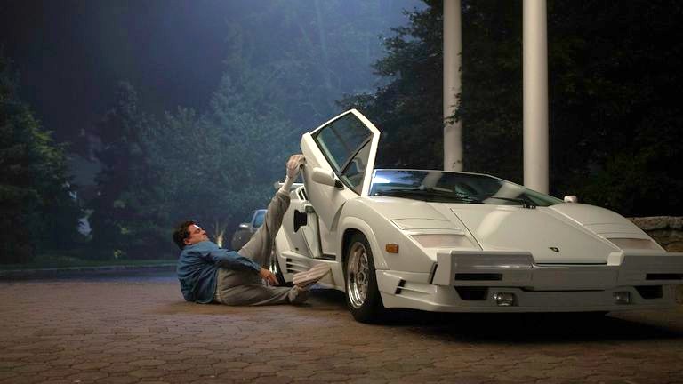 Scena z "Wilka z Wall Street" z kultowym Lamborghini Countach 25th Anniversary Edition z 1989 r. - symboliczny upadek króla naciągania. Prawdziwy wilk - Jordan Belfort – nigdy naprawdę nie upadł. W więzieniu odsiedział jedynie 22 miesiące za oszustwa finansowe i straty jakie ponieśli inwestorzy indywidualni oszacowane na 200 mln USD. Za kratami napisał książkę, po wyjściu stał się mówcą motywacyjnym, jest częstym komentatorem w studiu telewizyjnym stacji CNN, CNBC, Sky News czy BBC, fot. kadr z filmu, Paramount Pictures