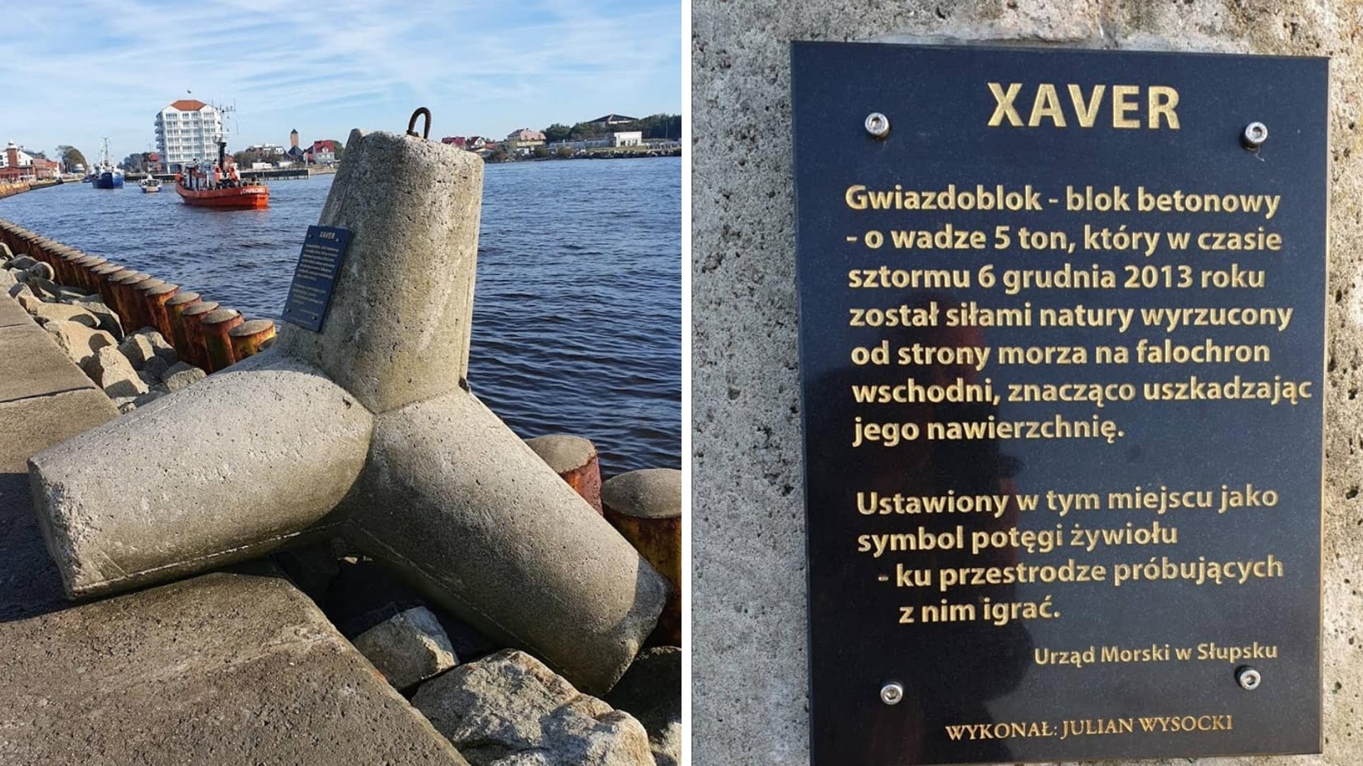 Ten gwiazdoblok wchodzący na betonowy falochron w Darłówku nie leży tam przypadkiem. To efekt działania siły wiatru i wody, ogromnego potężnego żywiołu jakim jest morze. W czasie grudniowego sztormu w 2013 roku szalejący na Bałtyku orkan Ksawery wywołał tak silne i wysokie fale, że w Darłówku jeden z chroniących nabrzeże betonowych gwiazdobloków - ważący 5 ton! - został dosłownie przerzucony z jednej, na drugą stronę falochronu.