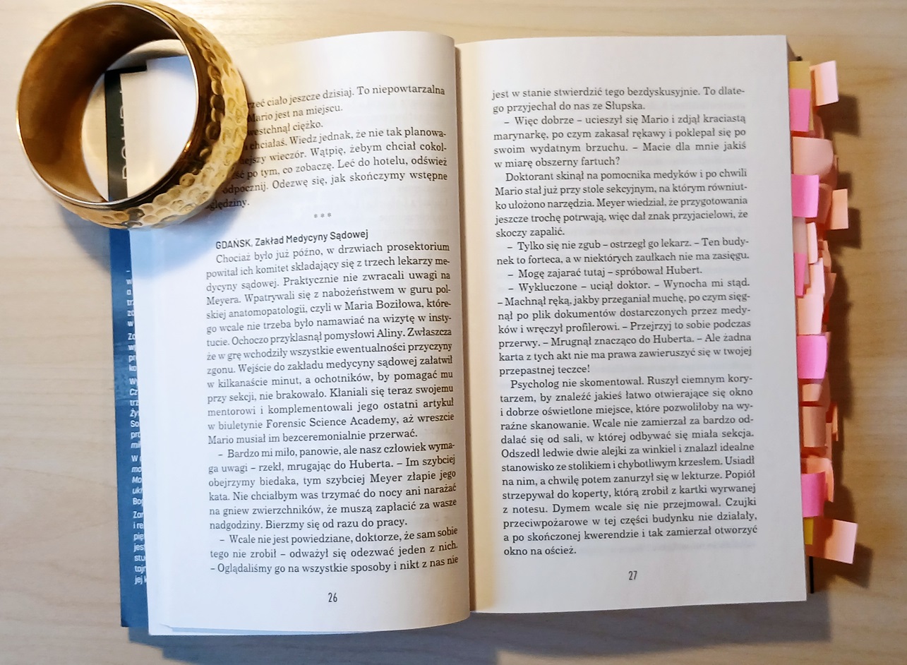 Recenzuję i opisuję jedynie to, co wydaje mi się godne uwagi. Książkę muszę przeczytać, by o niej napisać, bez tego nie byłabym w stanie jej polecić wklejejąc jedynie standardowy opis wydawcy z okładki książki. Robienie "kurortowych" notatek i czytenie powieści Katarzyny Bondy były dla mnie równie relaksujące jak prawdziwe wakacje w Łebie