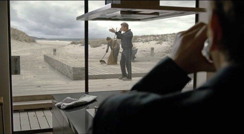 Z kolei klimatyczna scena, kiedy stoi na pustym parkingu o zmroku przed budynkiem grającym hotel rozgrywa się na tle siedziby niemieckiej linii FRS Syltfähre w porcie w Romo, która pływa właśnie między tą duńską wyspą, a niemieckim Sylt.