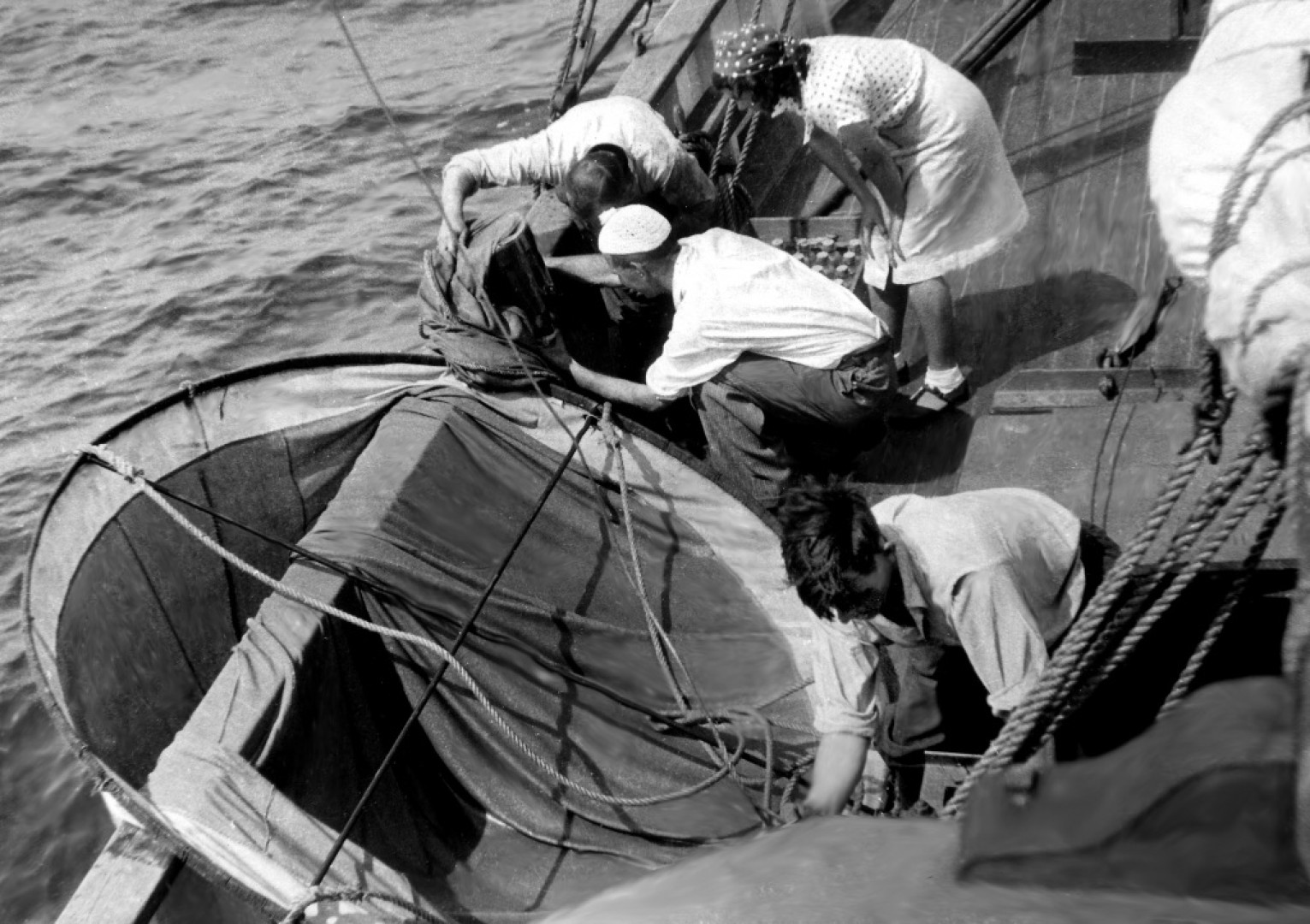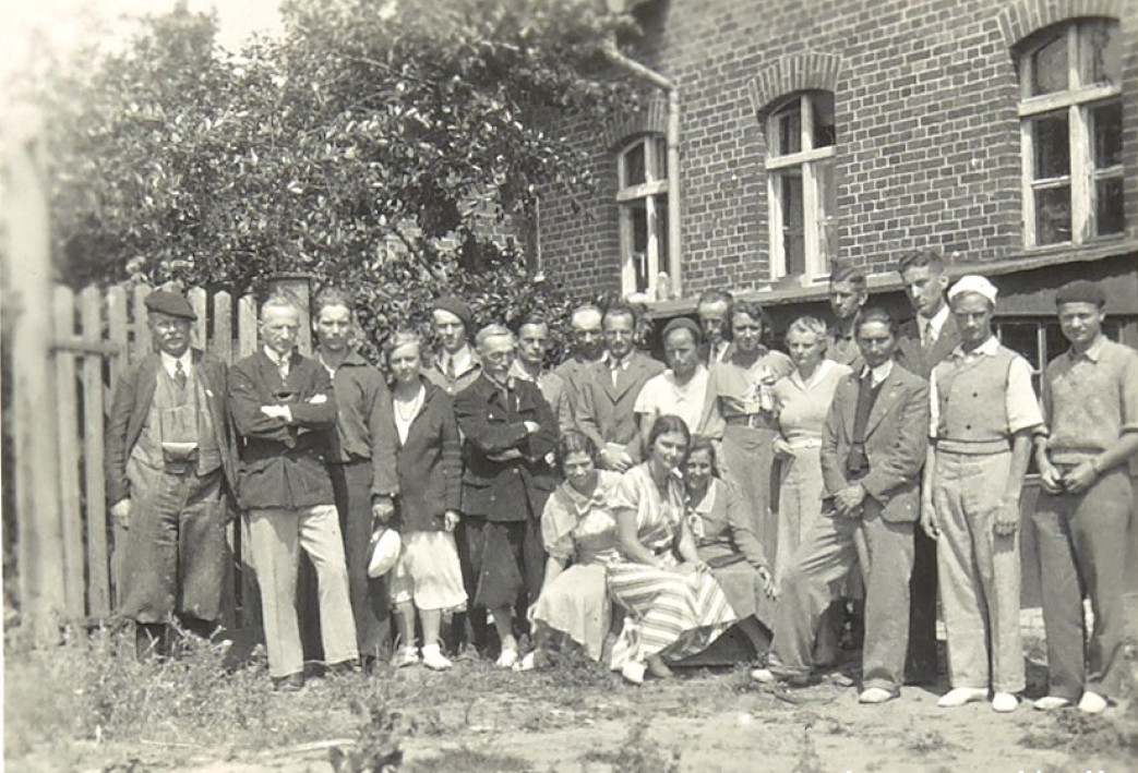 Zespół pracowników Morskiej Stacji Rybackiej w Helu tuz przed przeniesieniem w 1938 roku do Gdyni. Kazimierz Demel siedzi pierwszy z prawej, fot. Biblioteka Muzeum i Instytutu Zoologii PAN