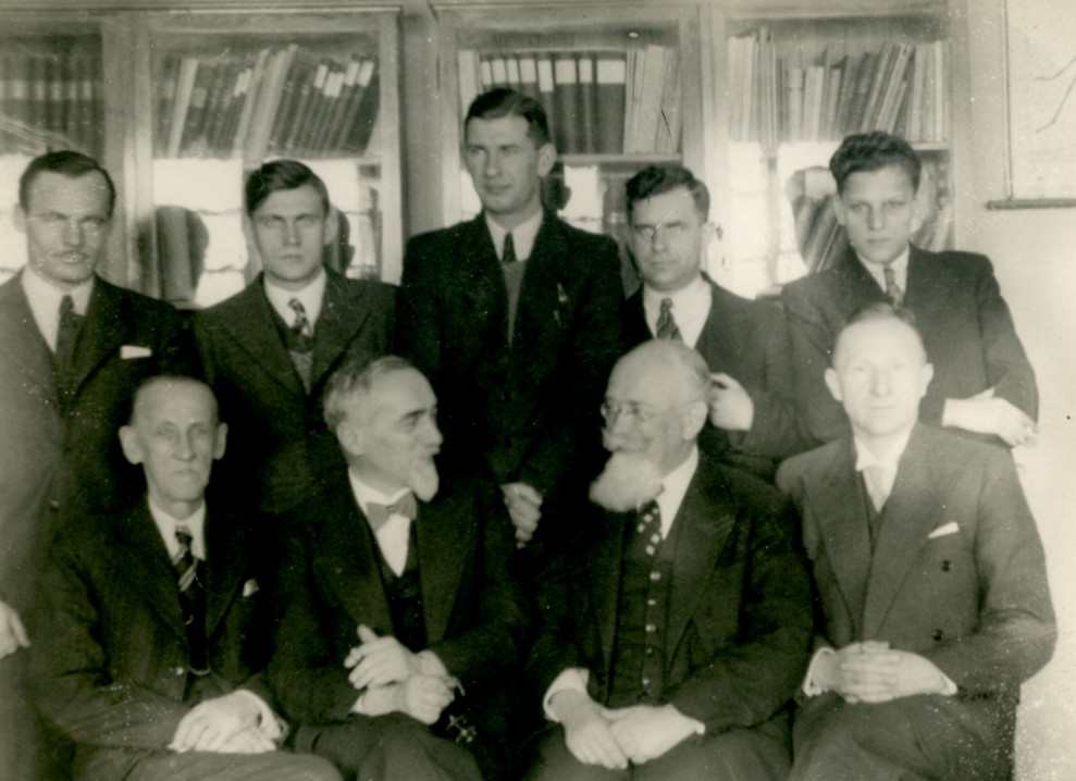 Kazimierz Demel wychował kilka pokoleń badaczy, tu z grupą współpracowników przed budynkiem w Helu, fot. Biblioteka Muzeum i Instytutu Zoologii PAN