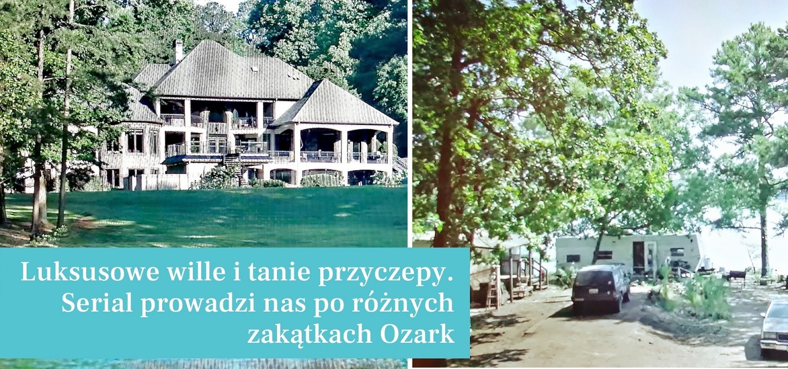 W Ozark całe życie kręci się wokół wody. Doskonale obrazują to zdjęcia lotnicze, a jak ktoś ma ochotę może również zobaczyć do na Google Maps. Setki małych, białych punkcików na jeziorze to garaże dla łódek. Nawet prowadzone przez Bydre'ów kasyno także stoi na wodzie.