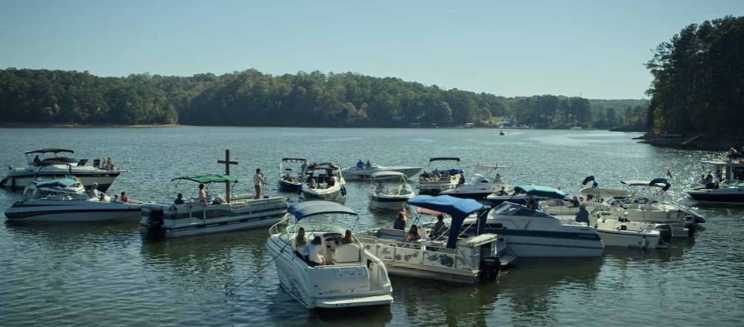Obowiązkowo w serialu pojawić musiał się wątek zlokalizowanych na wodzie imprez. Ozark słynie bowiem m.in. z Party Cove. To popularna nazwa, nadana Anderson Hollow Cove, jednej z zatoczek na jeziorze. W weekendy staje się ona prawdziwą mekką imprezowiczów, których nie obowiązują żadne ograniczenia, co z kolei rodzi wiele protestów bogatych właścicieli willi z tej okolicy, policji i szefostwa zlokalizowanej nieopodal jednostki wojskowej.