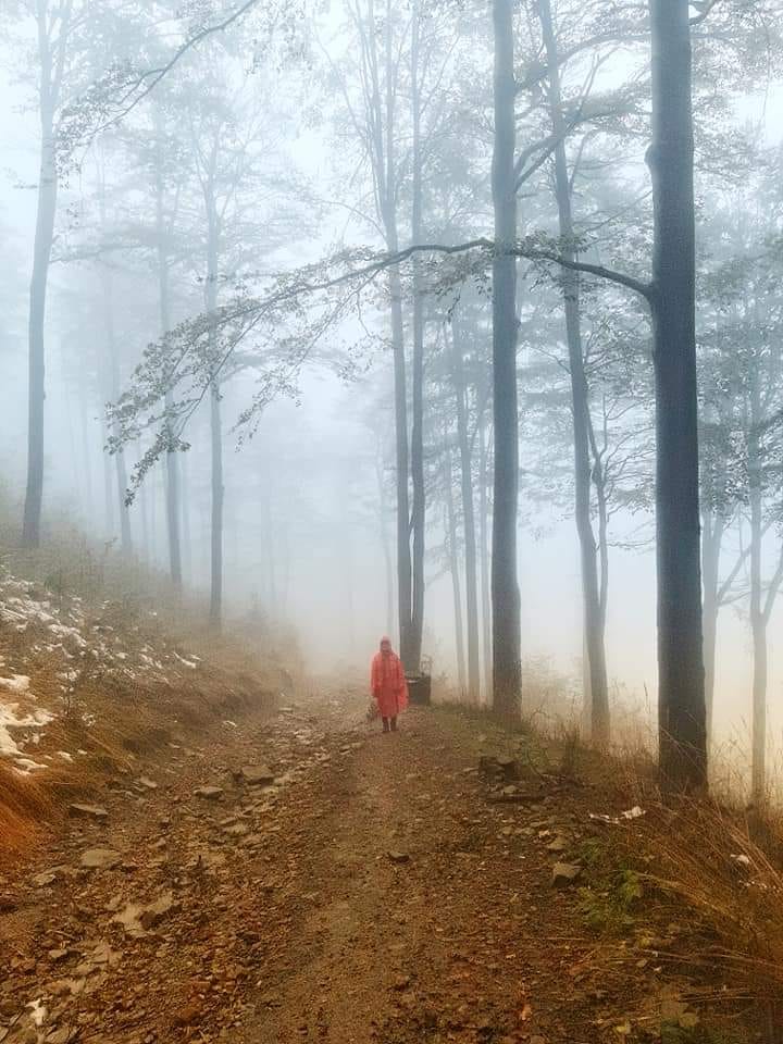 Tajemniczość mgły w górach uchwycił też doskonale w obiektywie Marcin Grzybowski, właściciel hotelu z apartamentami XYZ w Szczyrku. Jesienna szarość skontrastowana z dziwną postacią w czerwonym płaszczu wyłaniającą się na pustej, górskiej ścieżce to prawie idealny kadr do thrillera.