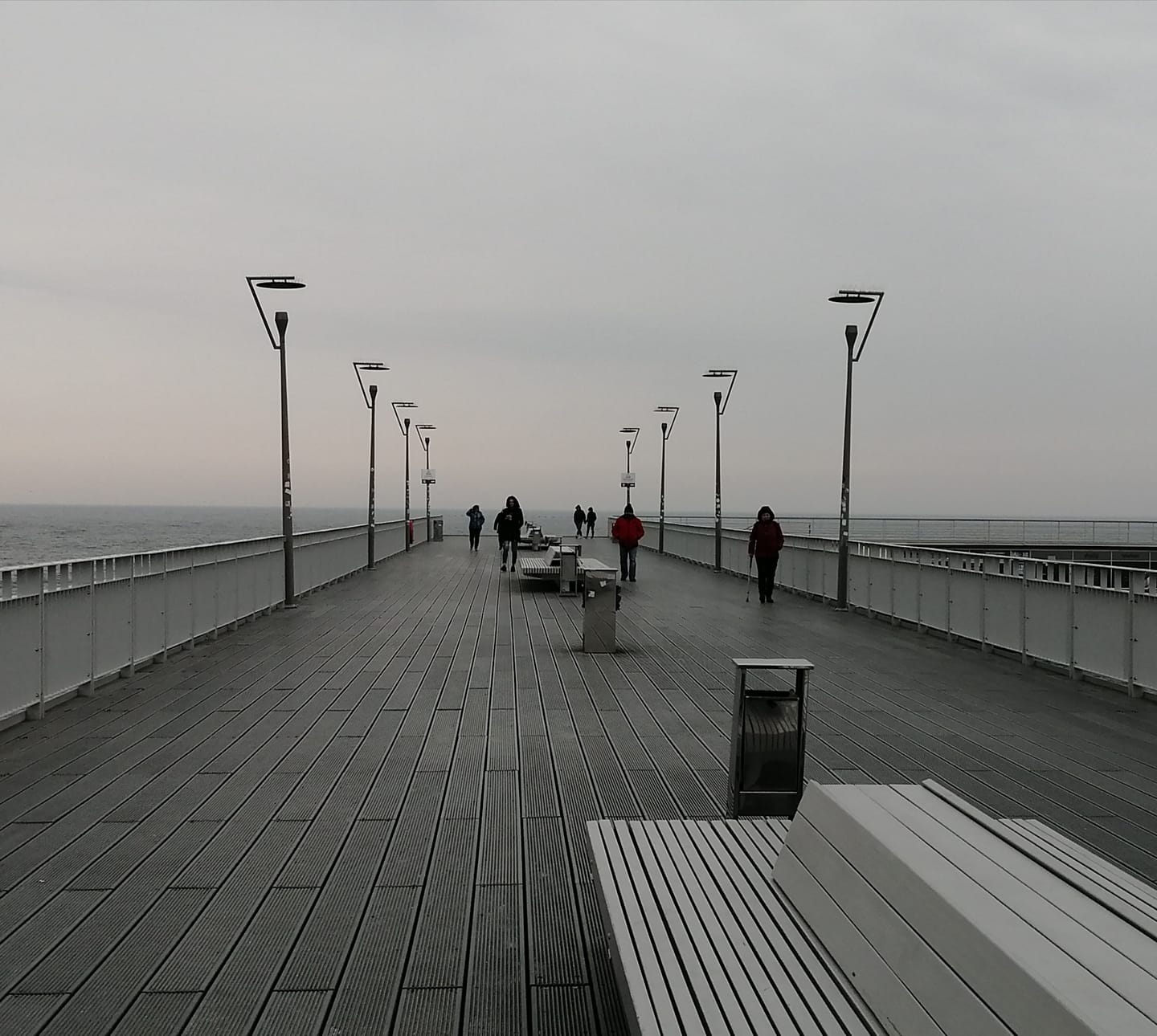 Szare, nostalgiczne kadry molo w Kołobrzegu. To jeden z niewielu kurortów na polskim Wybrzeżu, który funkcjonuje faktycznie przez cały rok. Wiele osób odwiedza miejscowość celowo po sezonie, licząc właśnie na mgliste klimaty, dużo jodu i mało turystów.