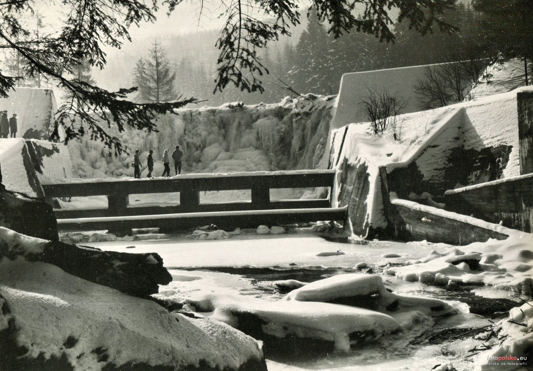 Zimowy kadr na Małą Zaporę wykonany na poczatku lat 60. XX wieku na potrzeby pocztówki wydawanej przez RUCH
