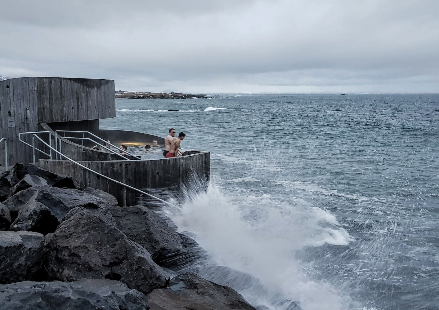 Podczas przypływu fale rozbijają się bezpośrednio pod łaźniami, pozwalając użytkownikom poczuć ryczącą potęgę oceanu pod stopami, fot. Magnús Aðalmundsson