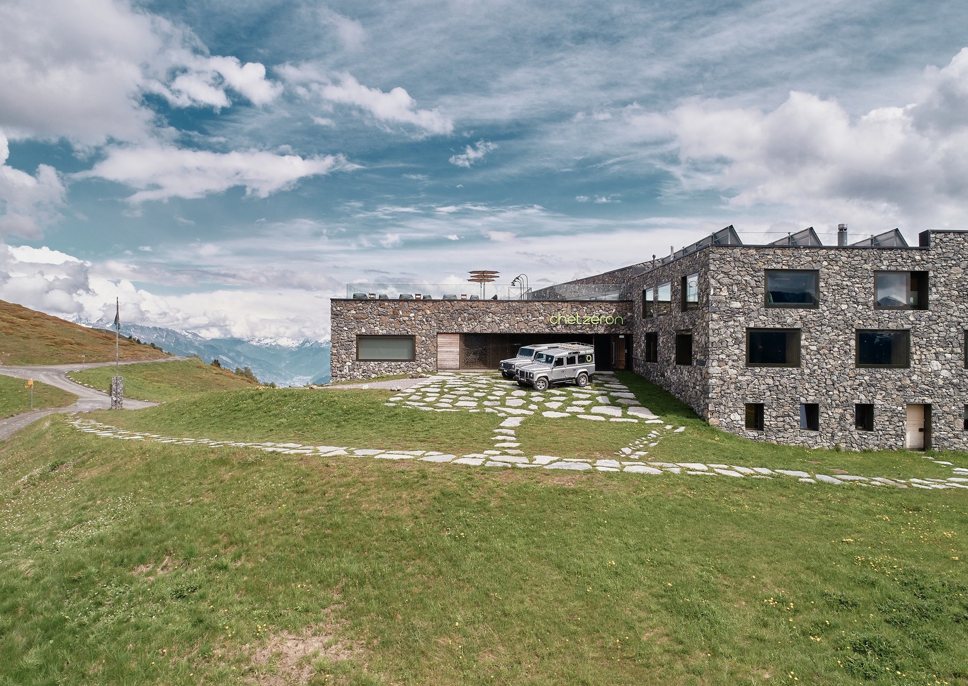 Budynek oddano do użytkowania w grudniu 2014 roku. Architekturę opracowała szwajcarska pracownia Actescollectifs Architectes. Jest nie tylko wtopiony w przyrodę, ale może się też pochwalić szwajcarskim środowiskowym certyfikatem dla zrównoważonego budownictwa – Minergie. Potwierdza on, że hotel redukuje zużycie energii, emisję CO2, ma optymalną temperaturę wewnątrz i wysoką jakość powietrza w pomieszczeniach.