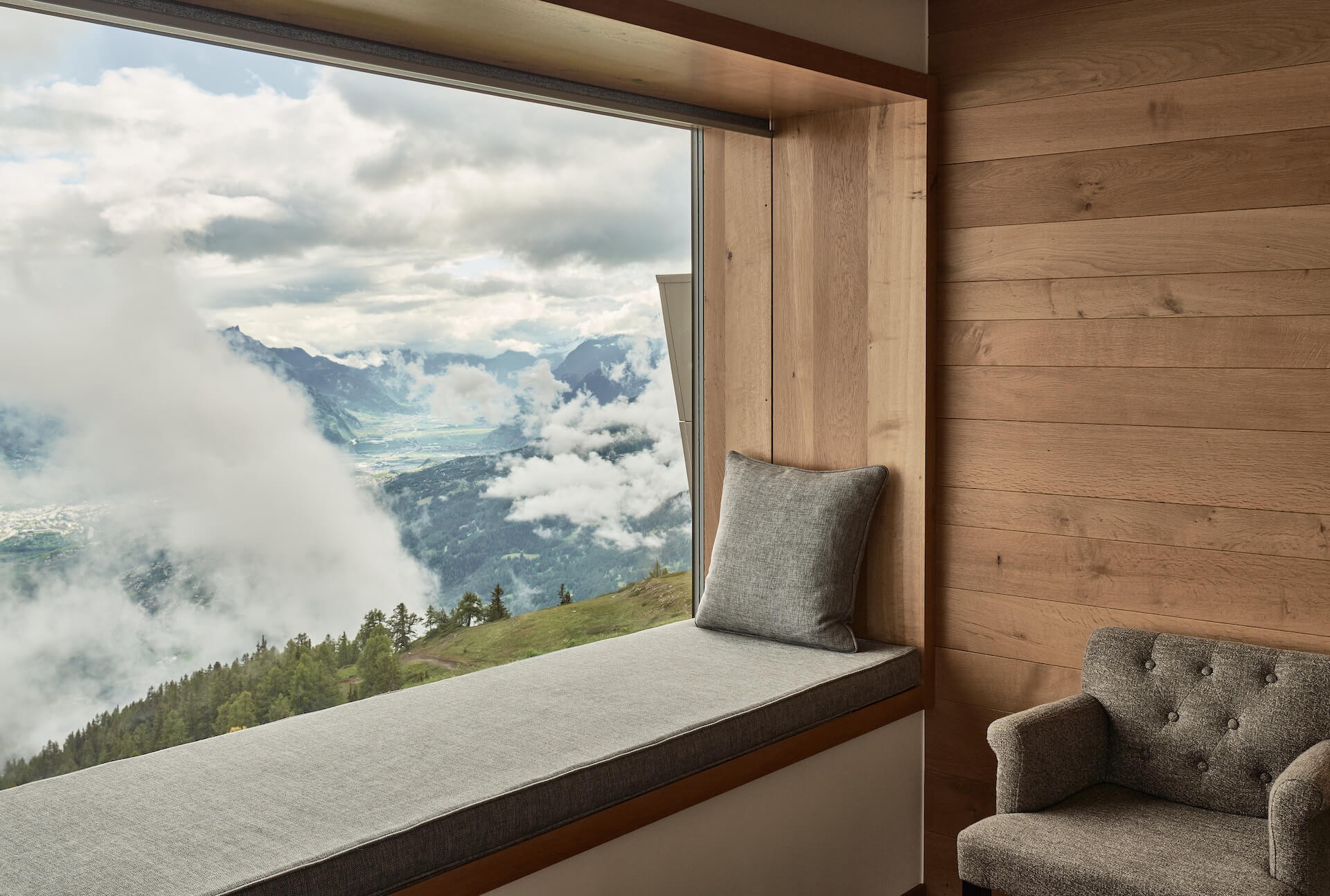 Niezależnie od pory roku, godziny i pogody wypoczywający w hotelu goście mają możliwość podziwiania 360-stopniowej panoramy gór. Szczyty łączące się z niebem widzą ćwicząc na zewnętrz, kąpiąc się w zewnętrznym basenie, leniuchując czy jedząc. Goście spędzają czas na prostym relaksie. Nie potrzebują nic poza wodą, słońcem, śniegiem, spokojnym oddechem i wyciszeniem.