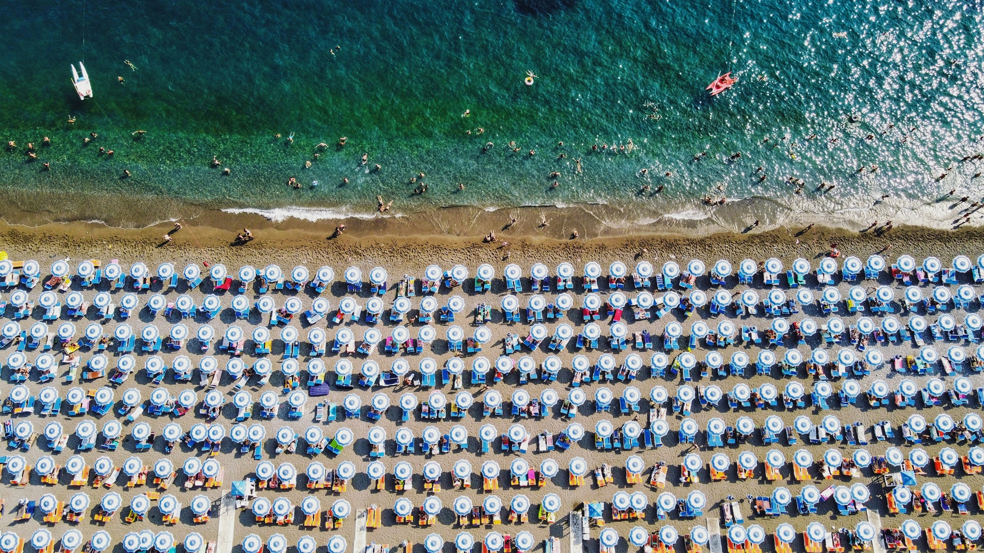 Plaże, turkus wody i jachty w Positano to symbol włoskiej riviery, fot. Marcio Pego, unsplash