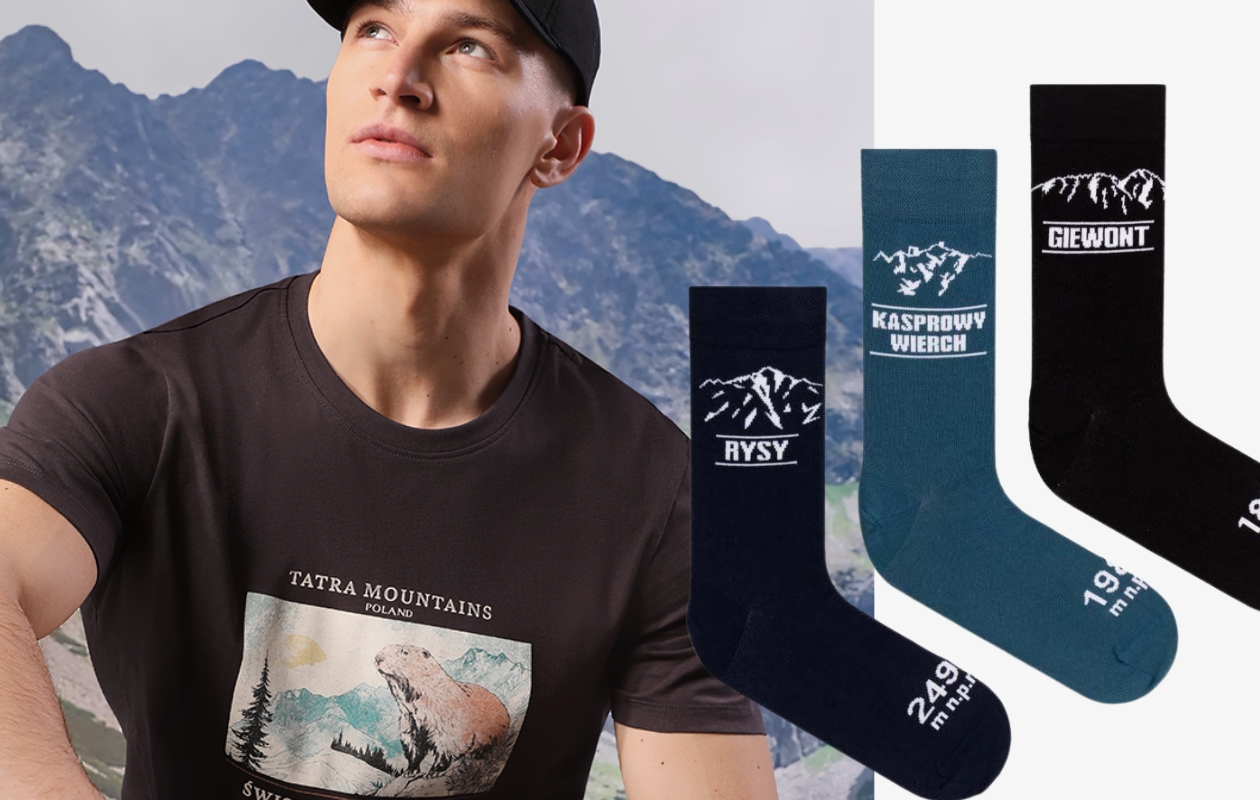 Ikony tatrzańskich miejsc zdobią t-sherty i bluzy. A rysunki górskich szczytów umieszczone na skarpetkach wraz w danymi o wysokości mogą być szybką ściągawką na klasówkę z geografii, fot. Medicinie