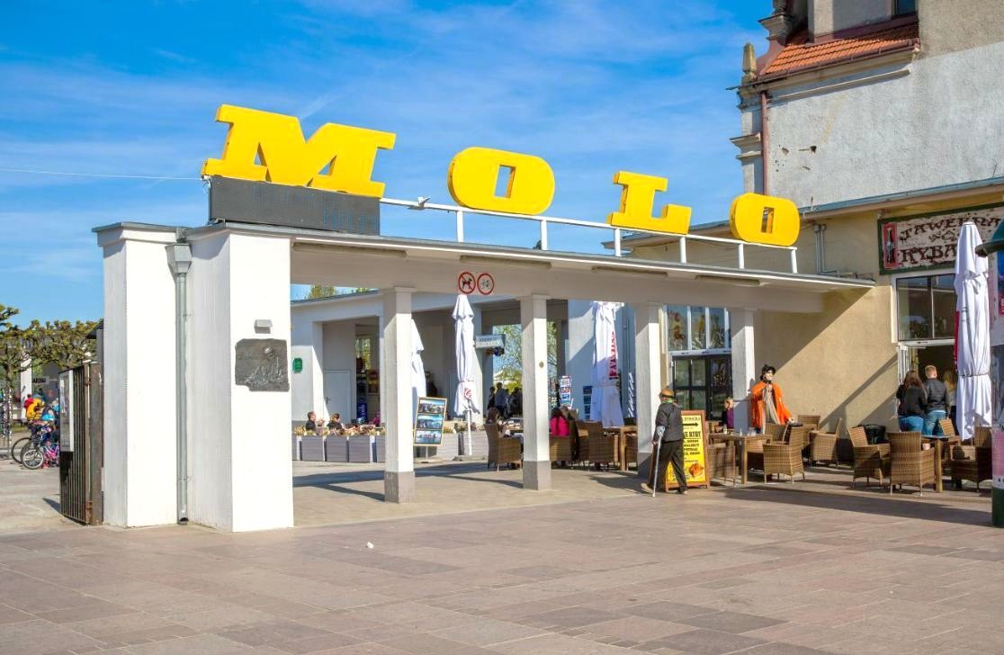 Charakterystyczny kanciasty, żółty napis „MOLO” powstał w lata 60. Zastąpił wcześniejszy napis-neon, zamontowany w latach powojennych. Miał delikatne, łagodne kształty nawiązujące do morskich fal. I właśnie do tej stylistyki tak mocno związanej z kurortem wrócić chce pomysłodawczyni projektu Anna Sumińska.