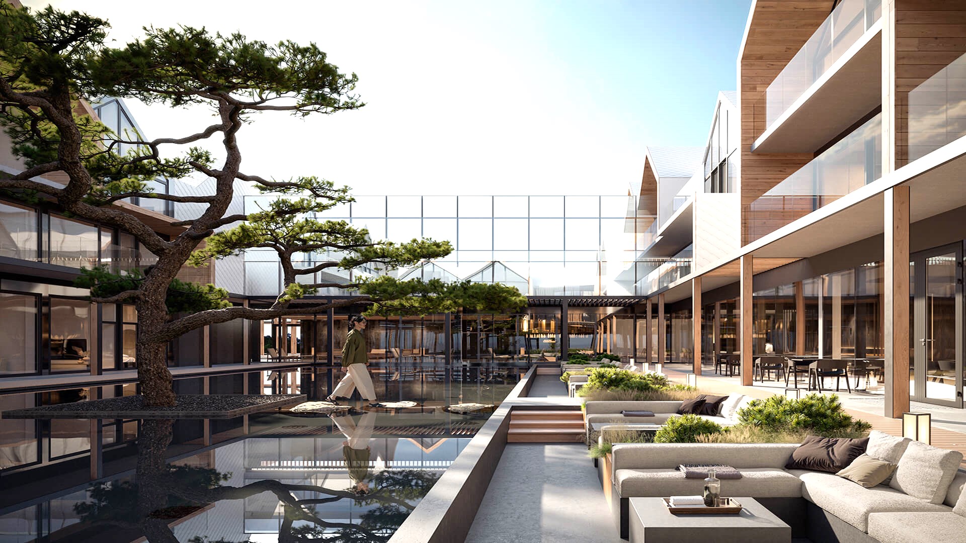 Zewnętrzne patio w części hotelowej, wzorowane na japońskim ogrodzie z miejscami do wypoczynku będzie miało inaugurację już wiosną tego roku