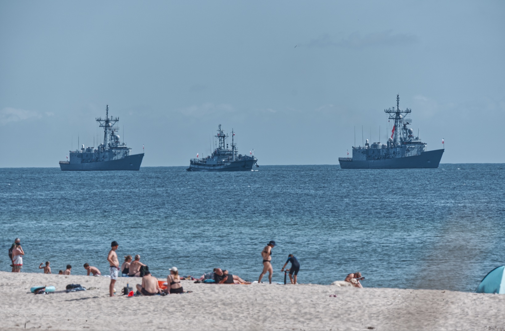 Przedsmak tego jak widoczna będzie parada okrętów marynarki z plaży zobaczyć można było w czasie próby generalnej 7 sieprnia 2025 r., fot. Jarosław Wolski