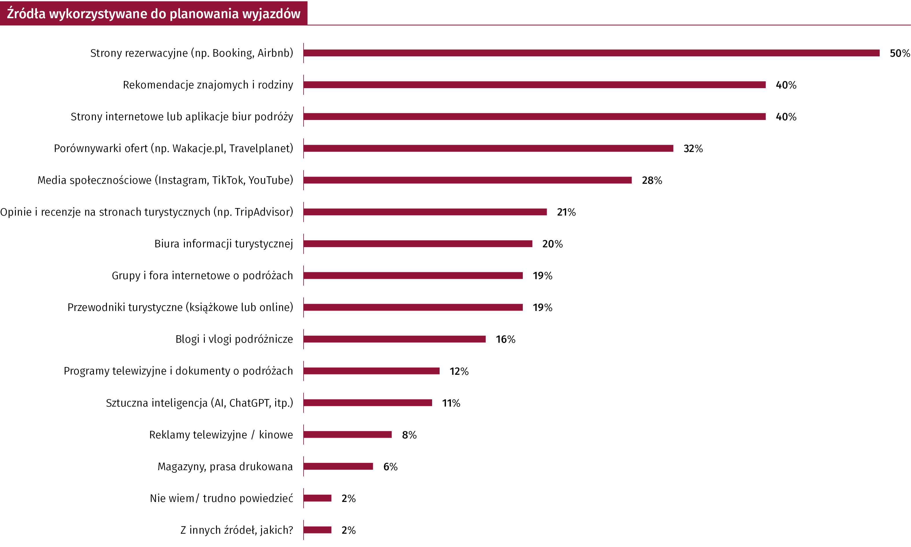 Co ciekawe 11% osób szuka pomysłów na wypoczynek poprzez narzędzia AI. To na razie niewiele, ale zważając na to że sztuczna inteligencja wdarła się masowo do świadomości dopiero z końcem 2022 r. to i tak bardzo dobry wynik, porównując z prasą drukowaną czy TV, które funkcjonują jako źródło informacji od dziesiątek lat. Trend ten na pewno będzie narastał. Młode pokolenie szuka odpowiedzi na każde pytanie już nie za pomocą Google, ale właśnie narzędzi sztucznej inteligencji jak choćby ChatGPT.