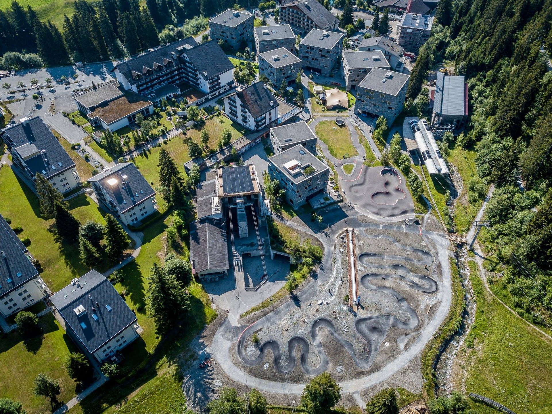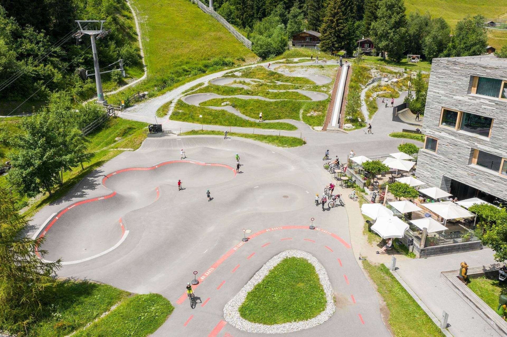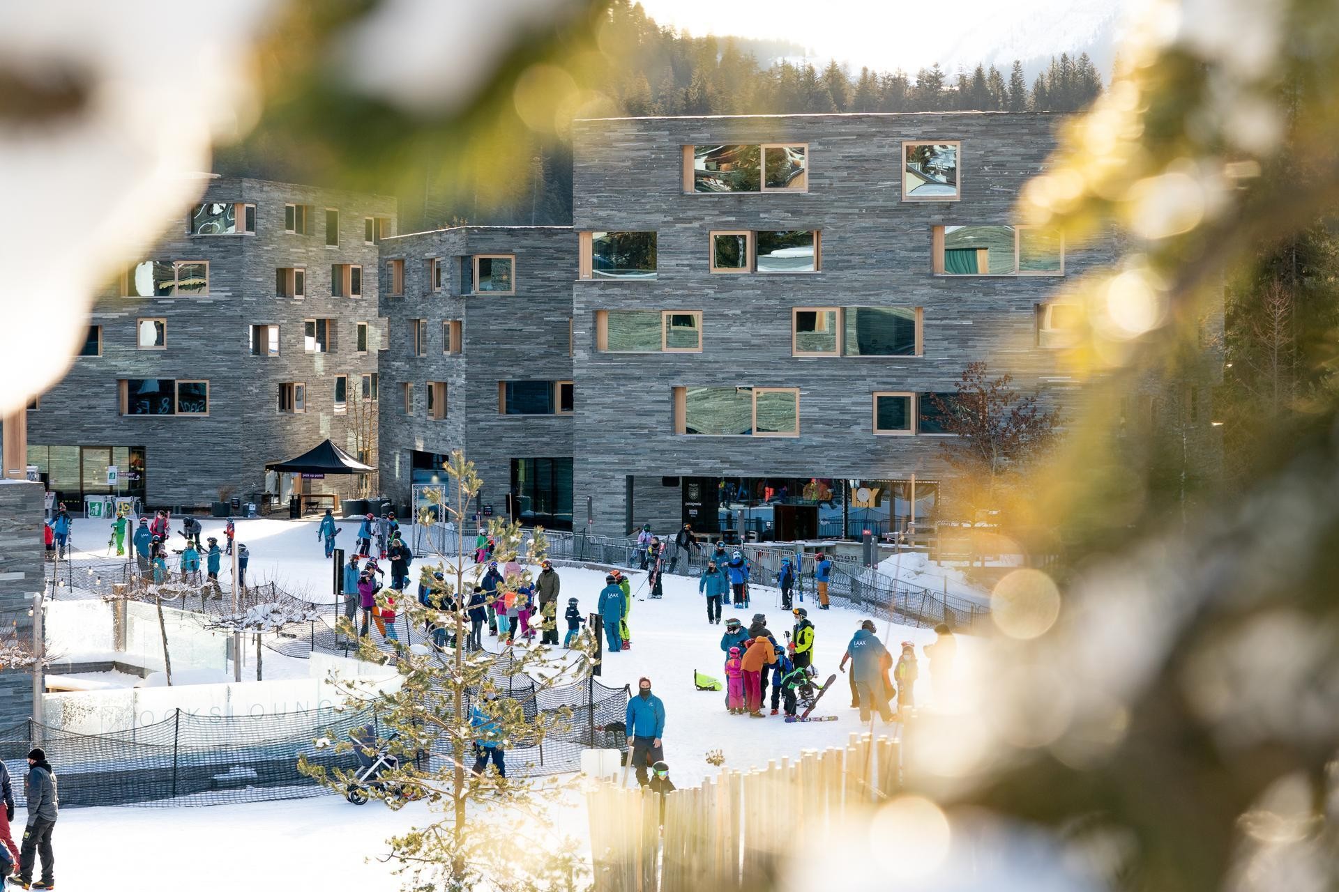 Czego kolejnym doskonałym przykładem jest inny hotel tuż przy stoku - rocksresort który także nie należy do żadnej globalnej sieciówki hotelowej. To kompleks kameralnych budynków w szwajcarskiej miejscowości Laax. Apartamenty w tych budynkach także były sprzedawane właścicielom indywidualnym. Narciarze zjeżdżają tu ze stoku dosłownie wprost do budynków i restauracji. Projekt żyje nie tylko w czasie białego szaleństwa, latem jest tu równie aktywnie co doskonale pokazują zdjęcia w galerii pod materiałem. Zachwyca też architektura – przykład, że hotele i apartamentowce w kurortach nie muszą być molochami na 10 pięter i setki pokoi w jednym budynku. Mogą mieć dużą skalę, ale szanującą otoczenie skalę zabudowy, która nie dominuje nad sąsiadującą z nią naturą.