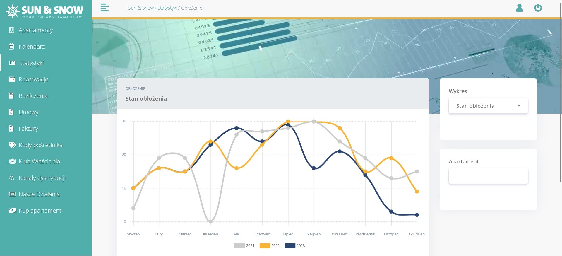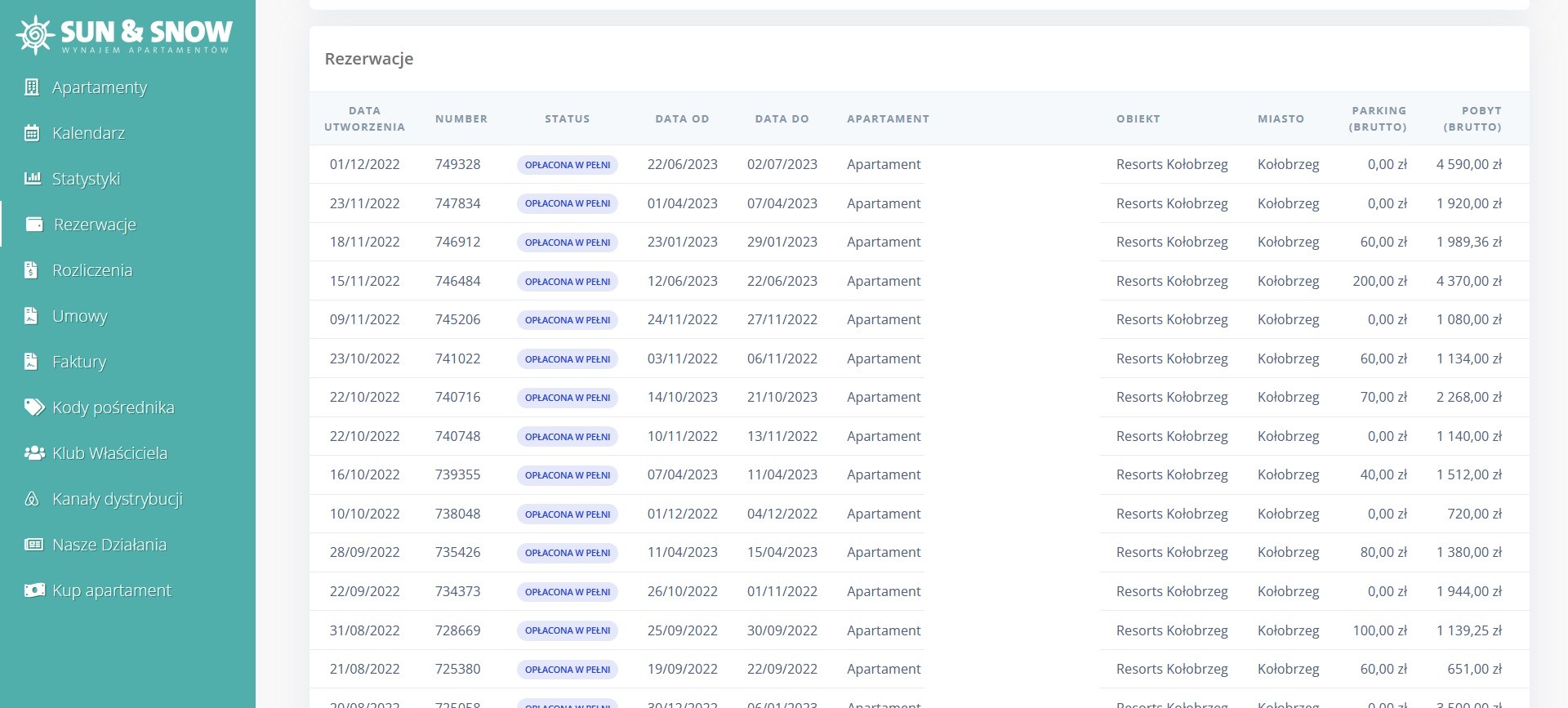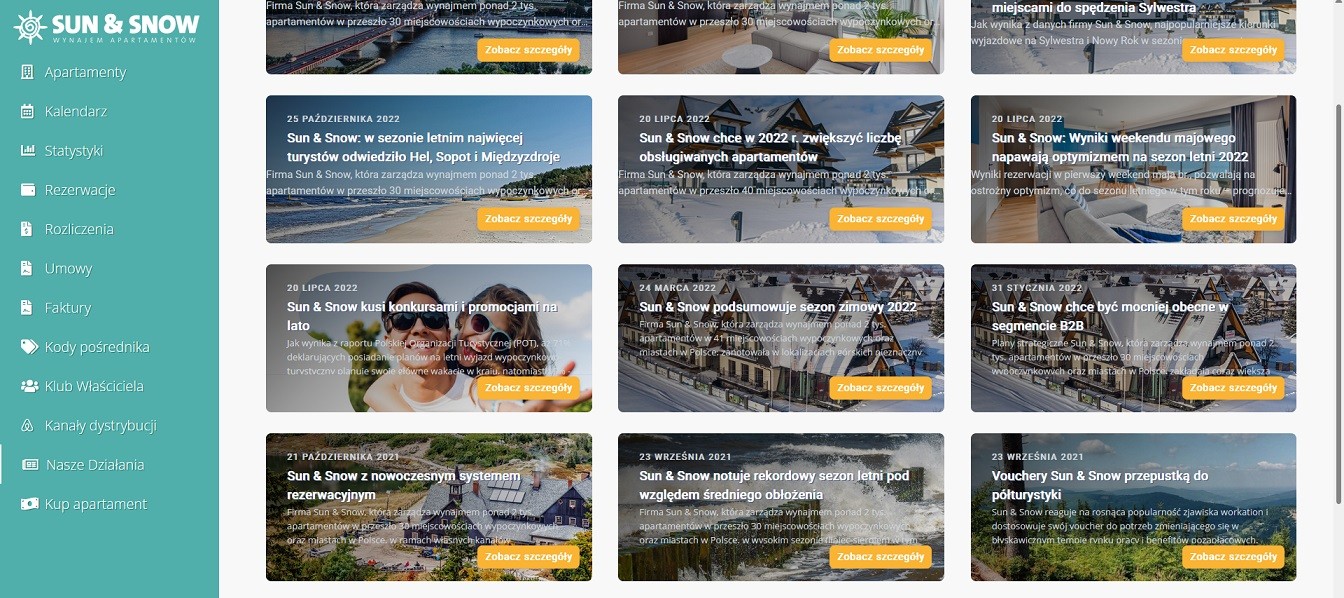 Sun & Snow ma swój autorski system do którego właściciele apartamentów się logują, by w każdym momencie kiedy mają taką potrzebę zobaczyć bieżący, aktualny w czasie rzeczywistym stan wynajęcia ich lokalu. To oprogramowanie, które spółka rozwija od wielu lat.