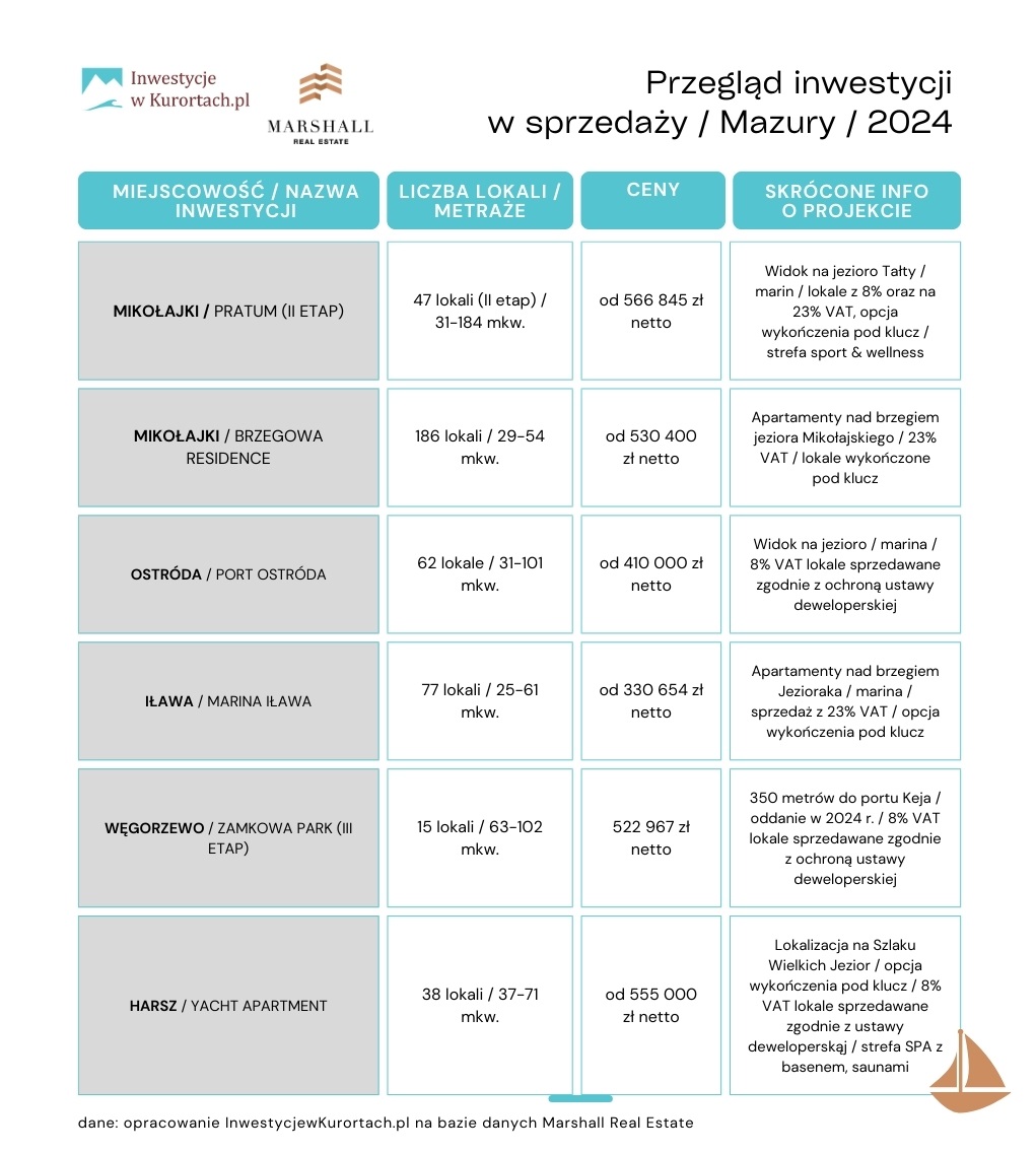 Jakie apartamenty mozna kupić na Mazurach i Warmii, przegląd inwestycji w sprzedaży: