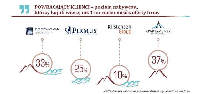 Na rynku condohoteli i nieruchomości wakacyjnych powracający klienci to spora grupa - od 10 do nawet 37 proc. nabywców. Komu tak bardzo ufają klienci, że kupują kolejny lokal u tego samego dewelopera? Takim poziomem wysokiej oceny wiarygodności i bezpieczeństwa na pewno pochwalić się mogą: Zdrojowa Invest, Kristensen Group, Czarna Góra Resort i Firmus Group. Przeczytajcie dlaczego?