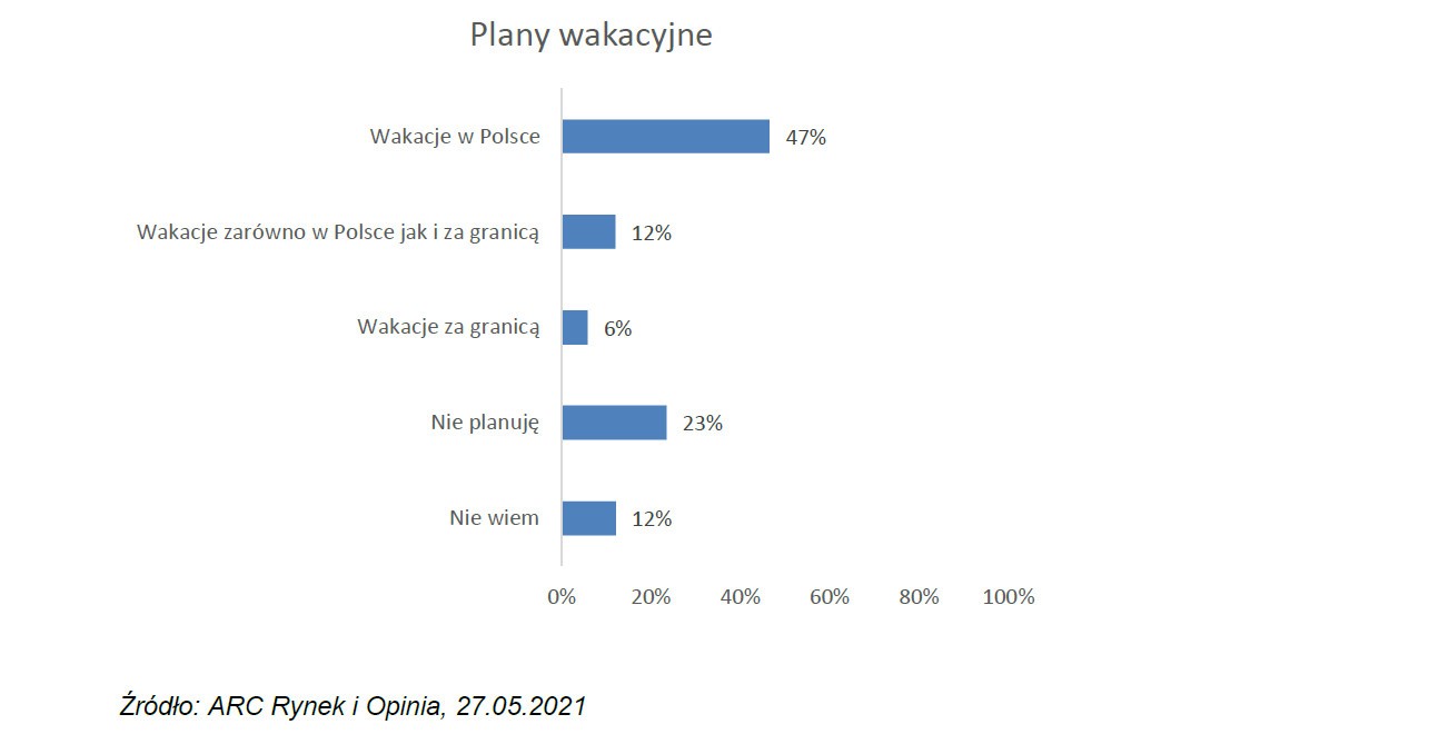 ARC Rynek i Opinia zbadał plany wakacyjne Polaków. W tym roku podobnie jak w 2020 r. biznesy w polskich kurortach liczyć mogą na prawdziwy tłum turystów. Według badania 47% rodaków planuje spędzić urlop wyłącznie w kraju, a 18% w Polsce i za granicą lub tylko za granicą.