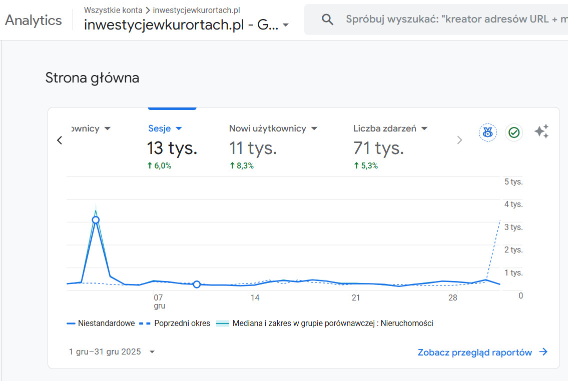 Grudzień 2025 - sesje 13 tys. / liczba zdarzeń, ruch 71 tys.