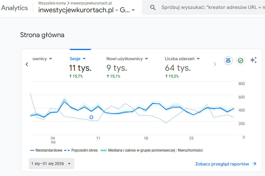 Styczeń 2026 - sesje 11 tys. / liczba zdarzeń, ruch 64 tys.