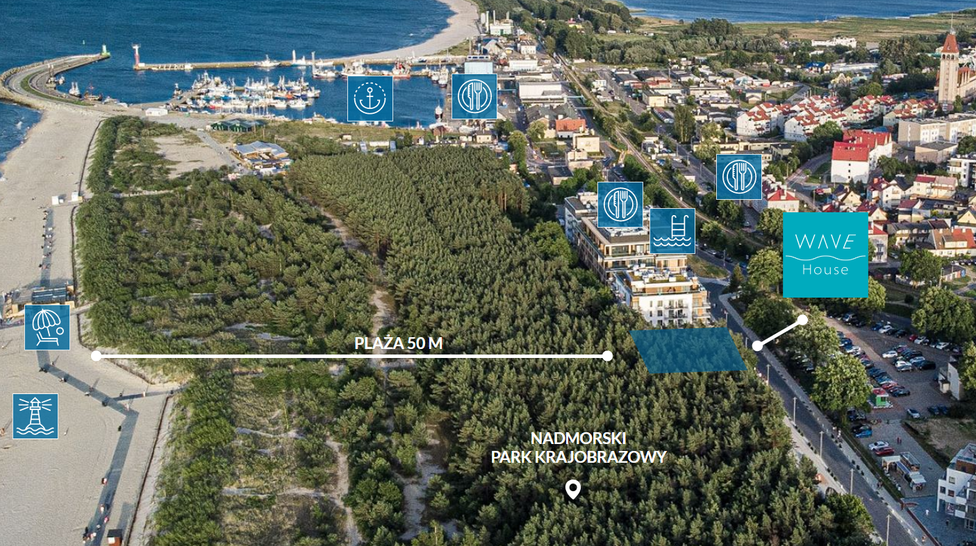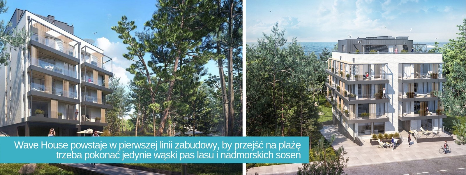 - Wave House powstaje w pierwszej linii zabudowy, by przejść na plażę trzeba pokonać jedynie wąski pas lasu i nadmorskich sosen (50 m).